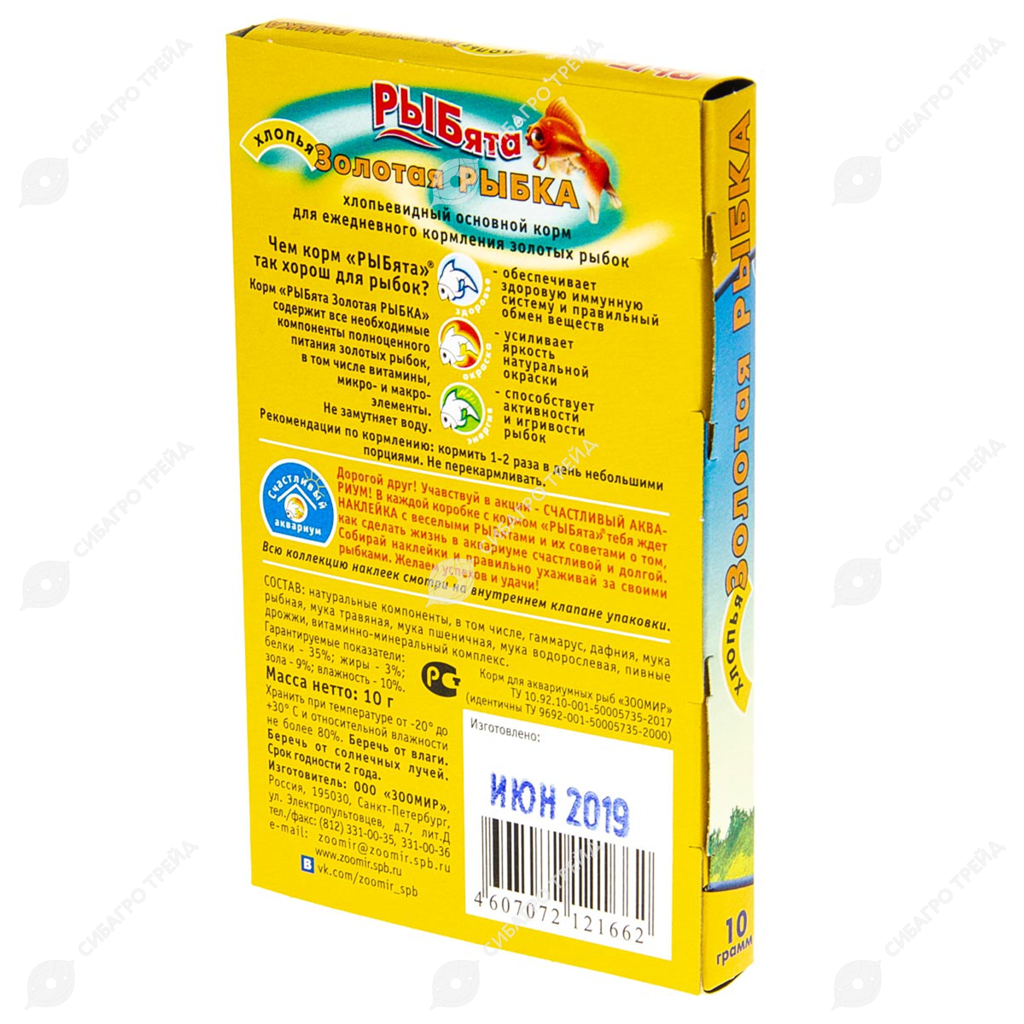 Корм "РЫБята Золотая РЫБКА" содержит все необходимые компоненты полноценного питания золотых рыбок, в том числе витамины, микро- и макроэлементы. Не замутняет воду.