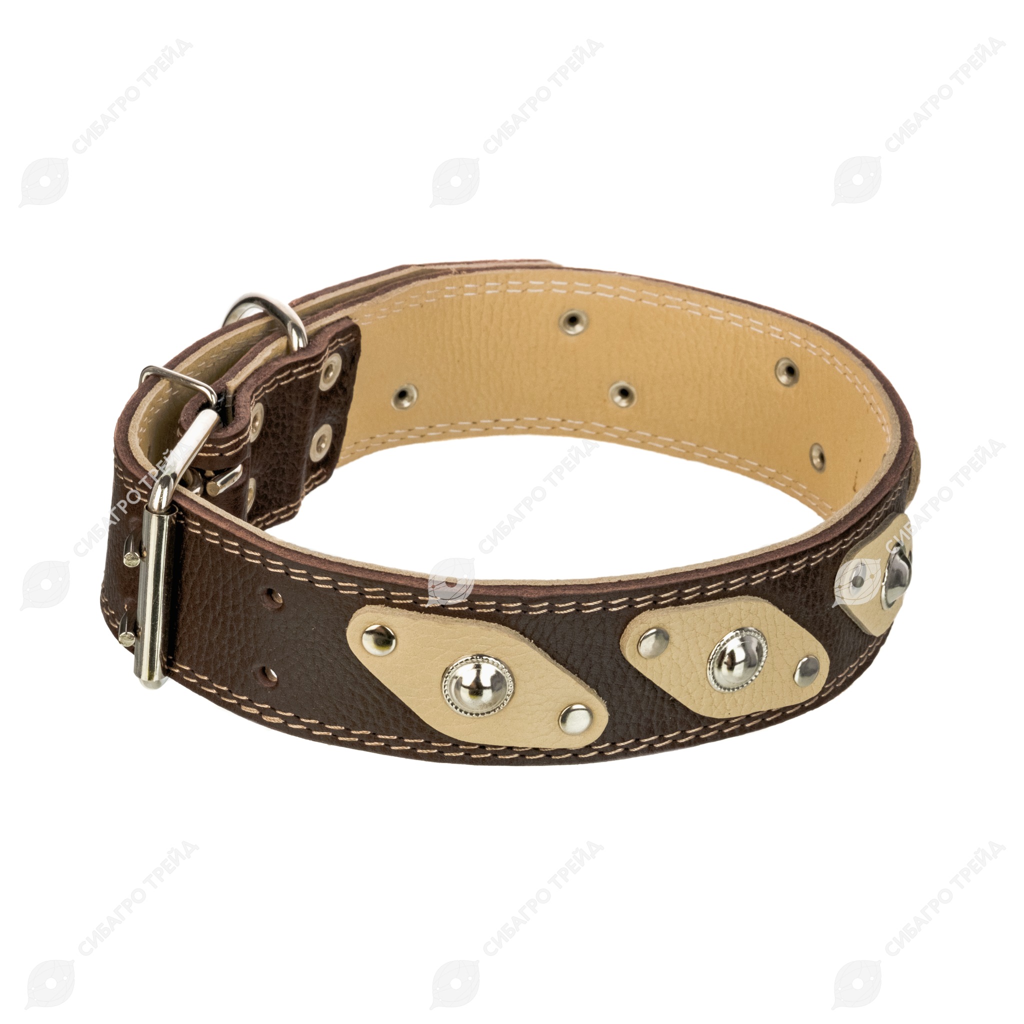 Ошейник №45 кожаный (ДВОЙНОЙ, УКРАШЕННЫЙ), ЧК