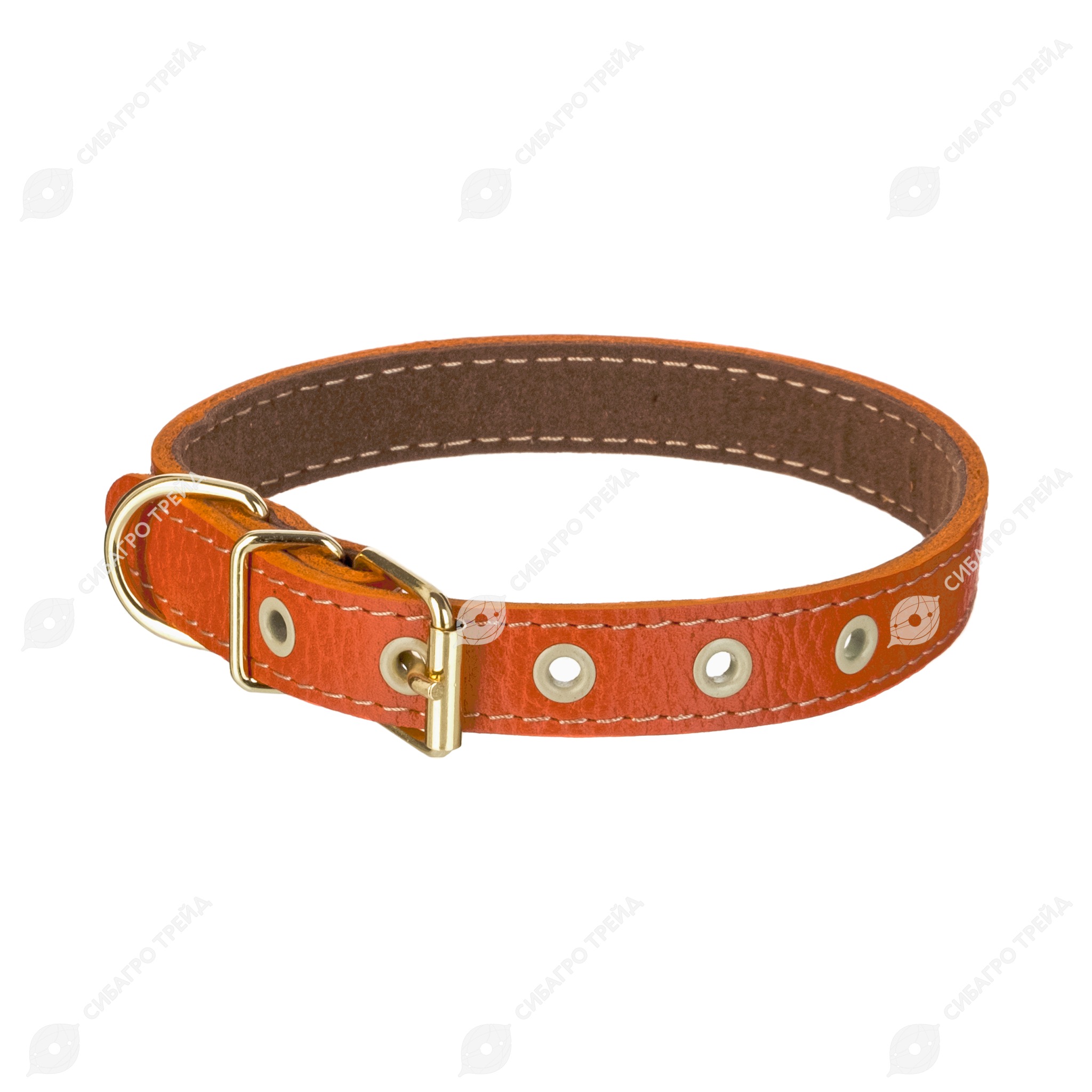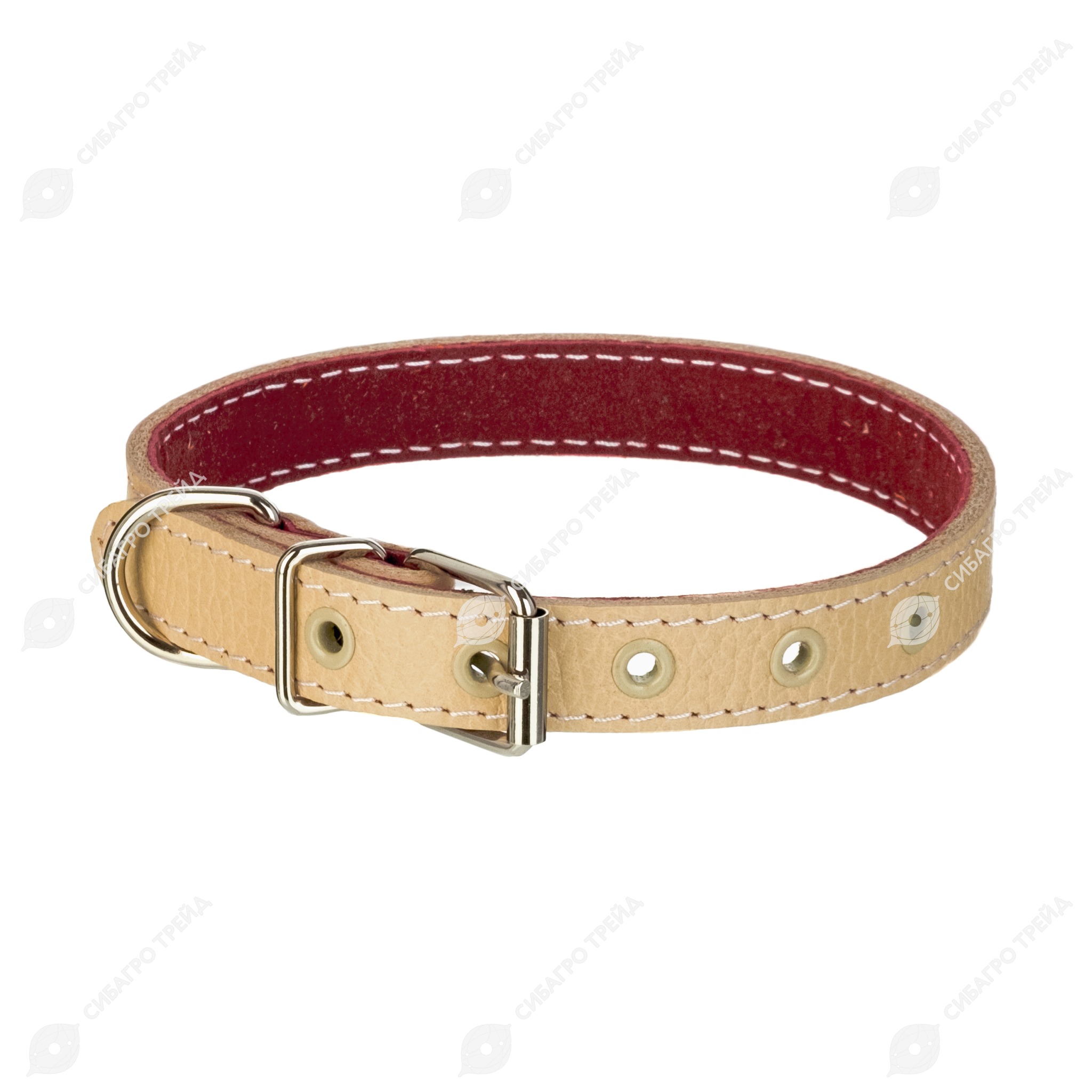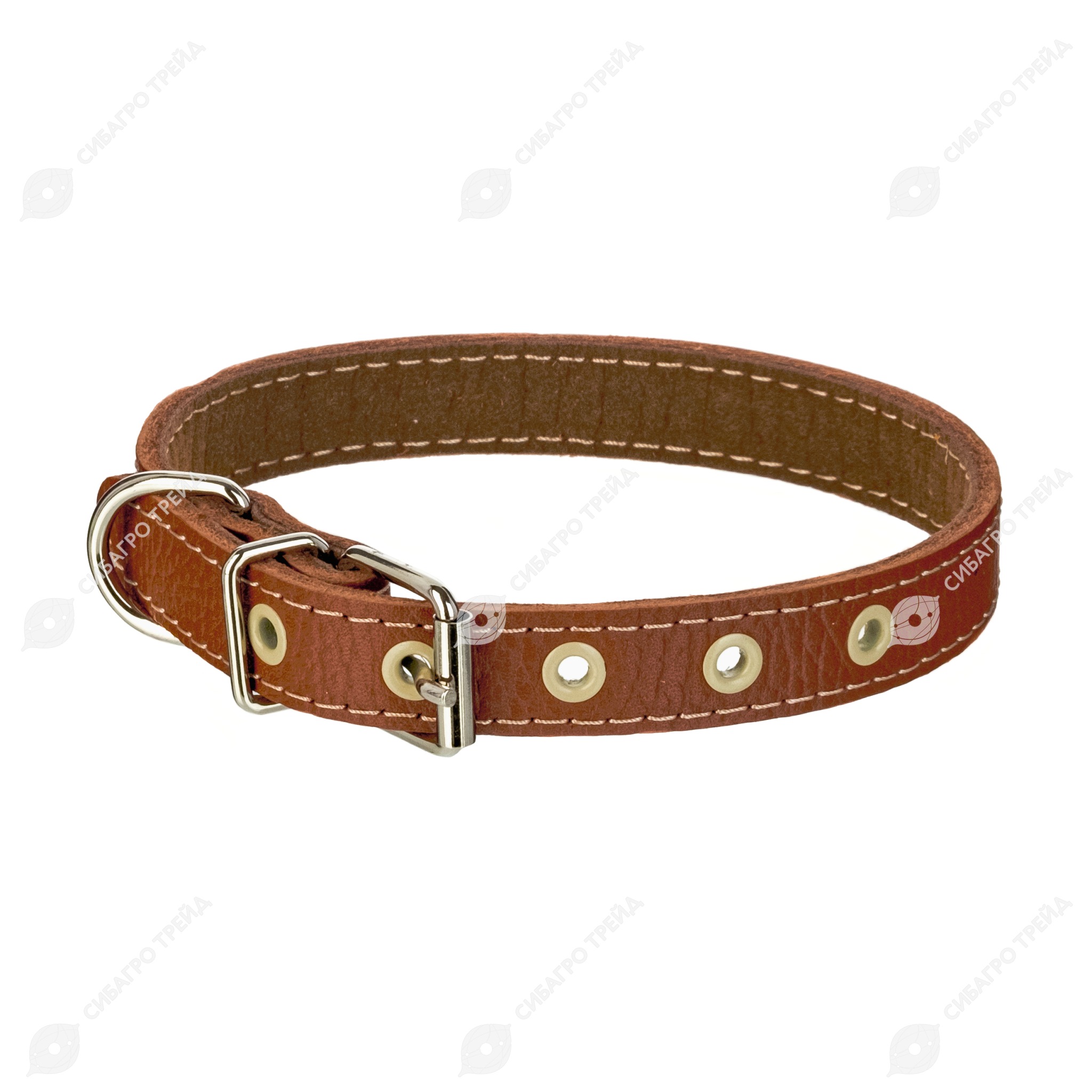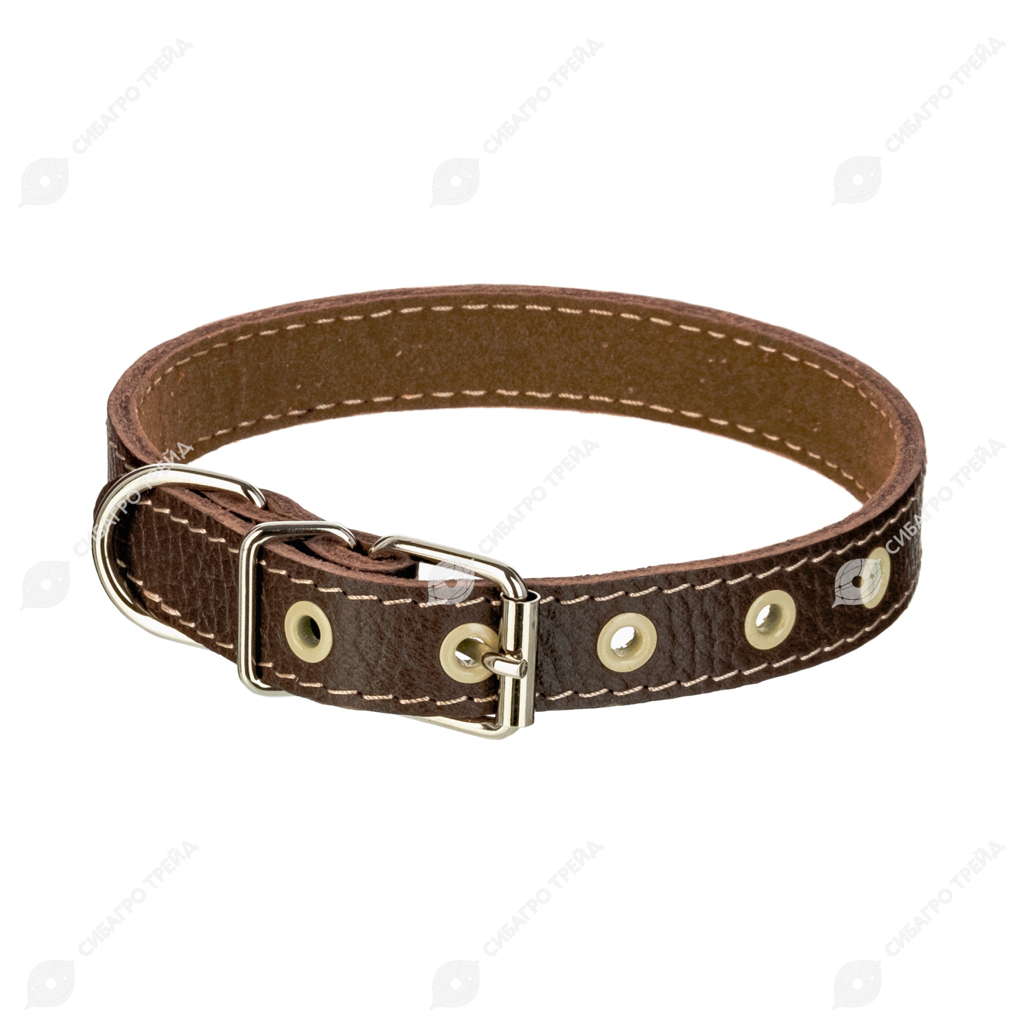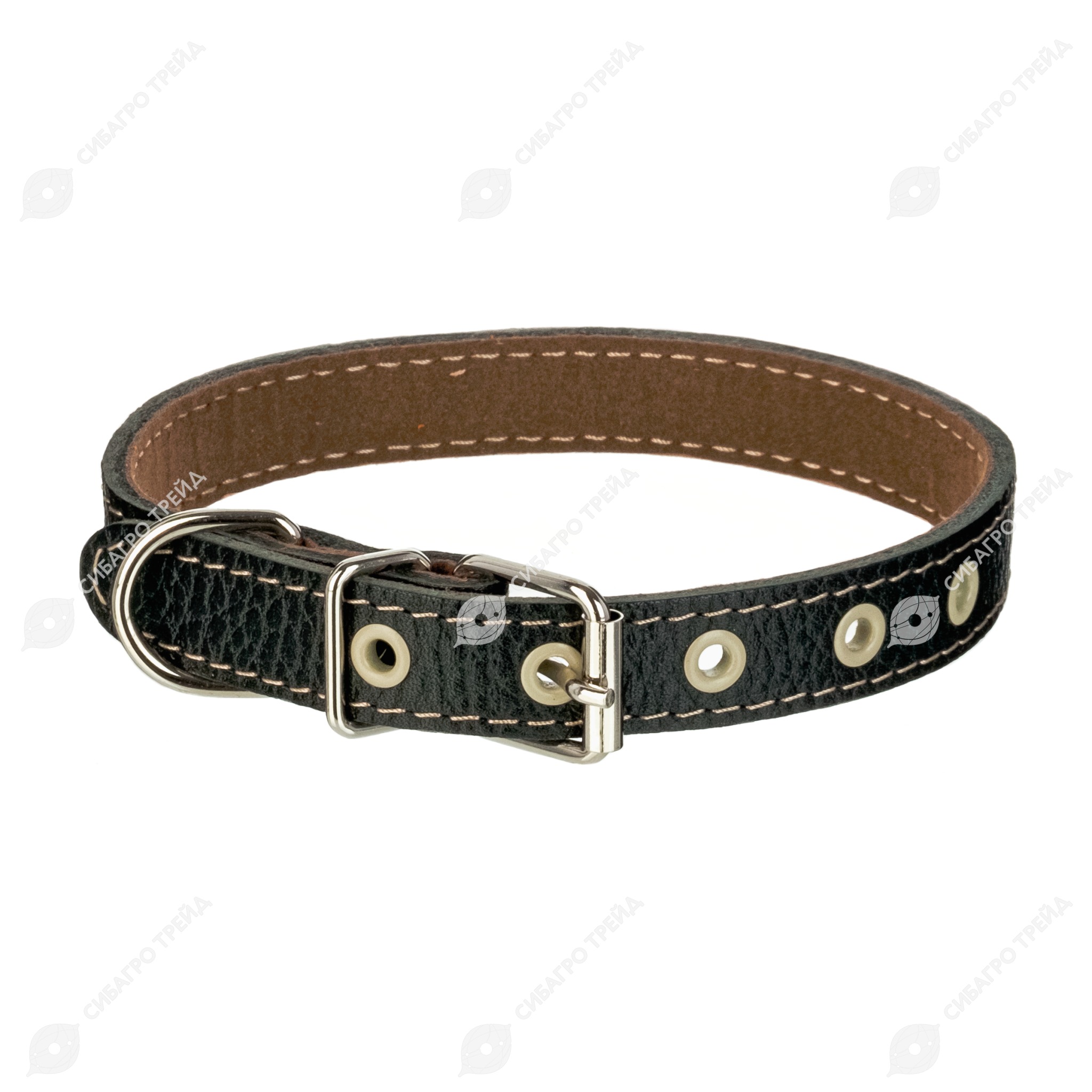 Ошейник выполнен из кожи, предназначен для собак. Надёжно застегивается на небольшую металлическую пряжку и имеет подклад. Размер ошейника можно регулировать.