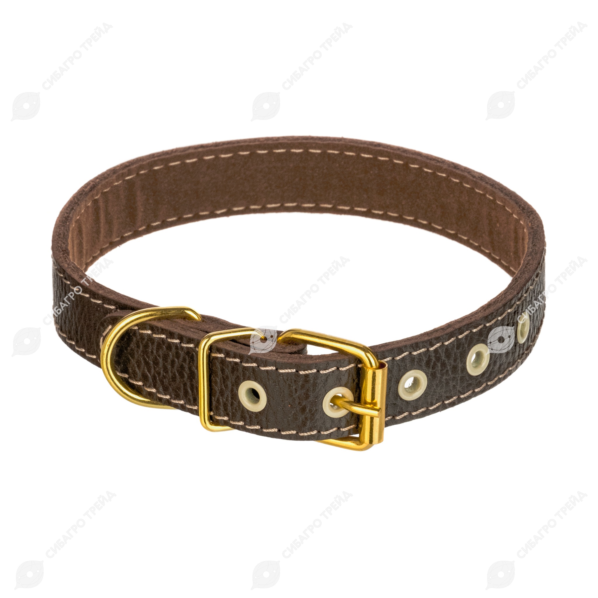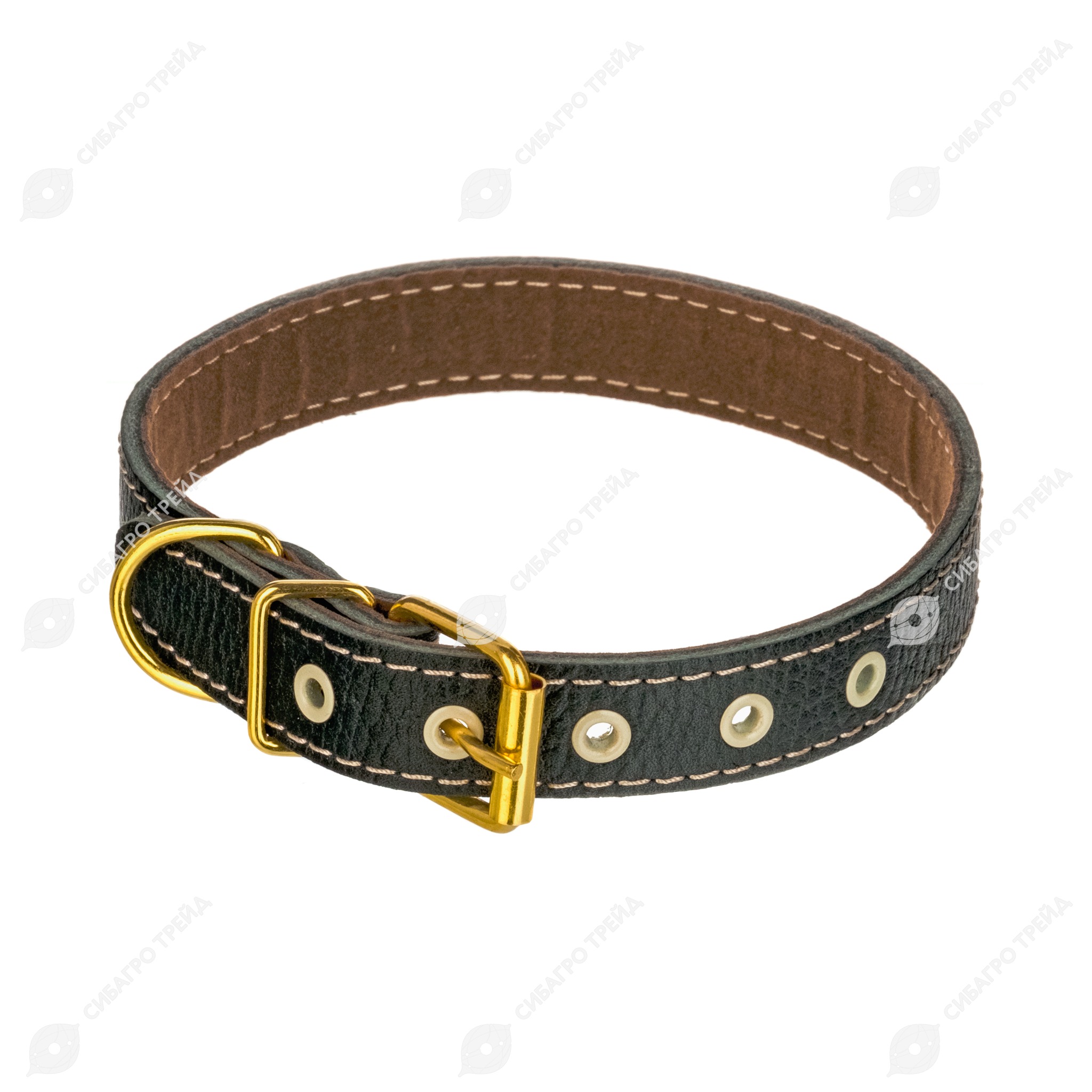Ошейник из кожи шириной 20мм, сложенной вдвойне и прошитой.