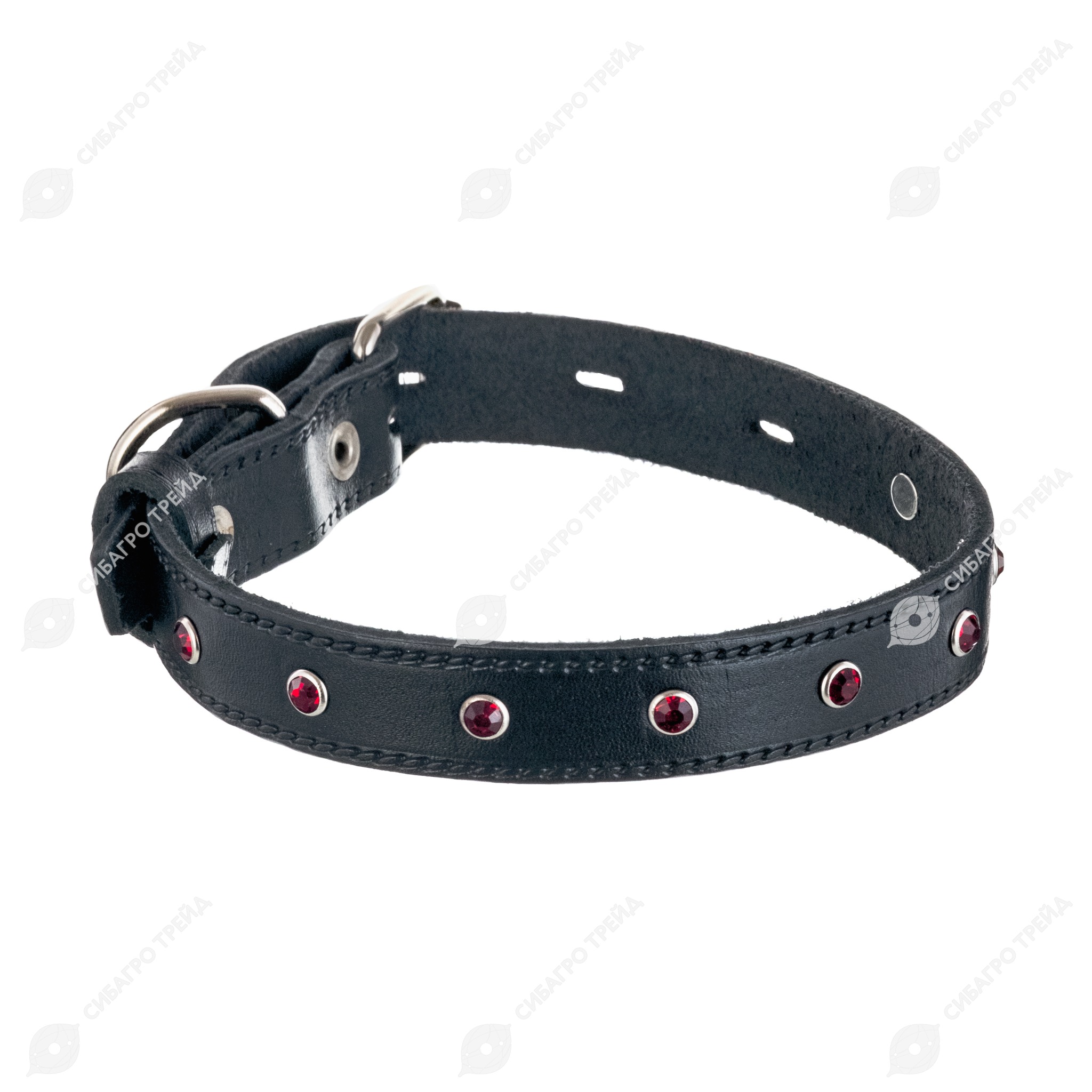 Ошейник кожаный (СТРАЗЫ) 32 - 41 см, 2 см, ЗООНИК