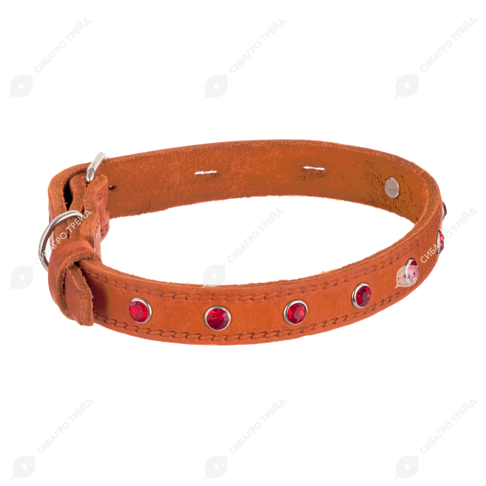 Ошейник кожаный с украшением стразы 15мм, 26-35см.
