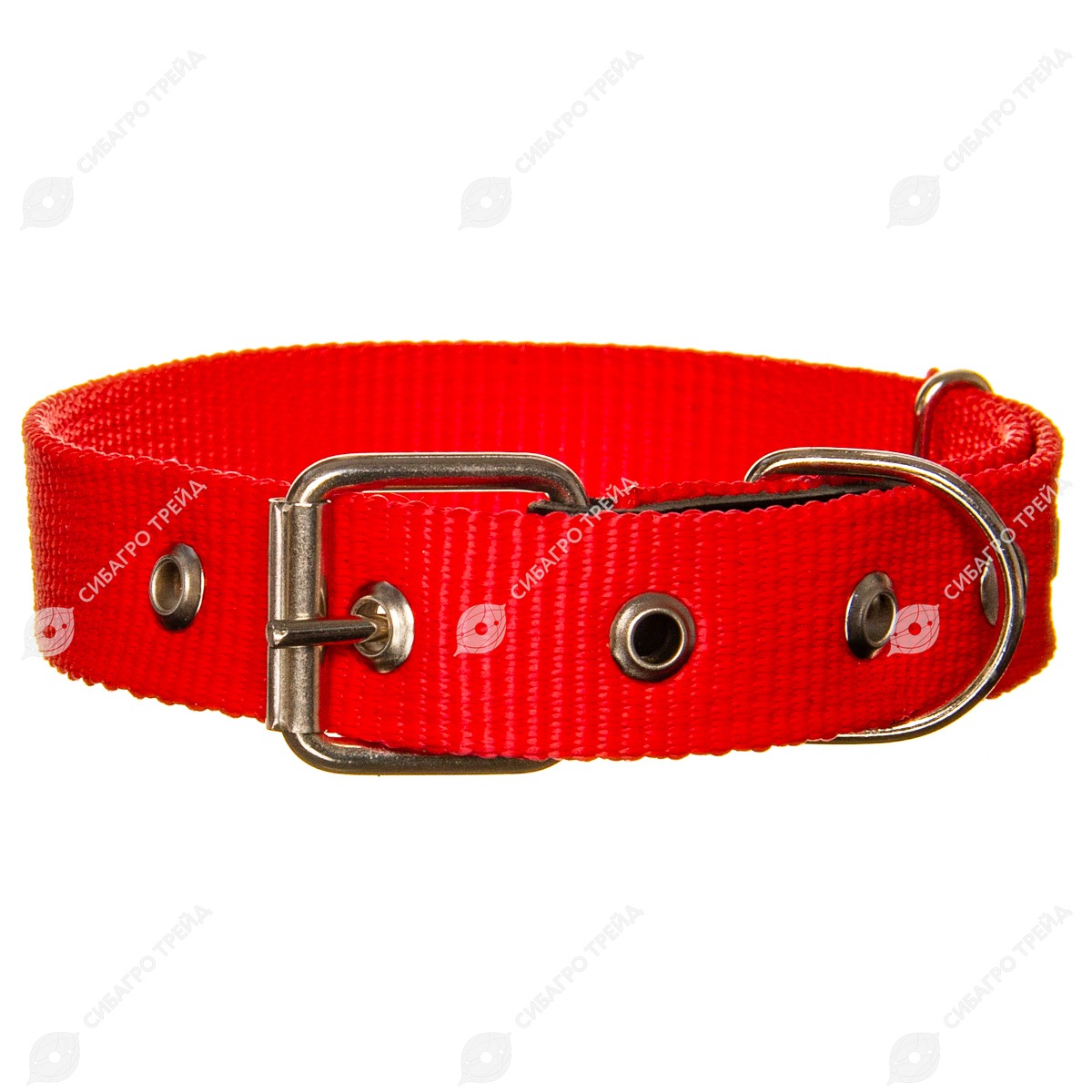 Ошейник предназначен для собак. Изготавливается из синтетической (полипропиленовой) стропы, пряжка пластиковая (фастекс) с регулировочной рамкой, полукольцо металлическое, сварное, никелированное.