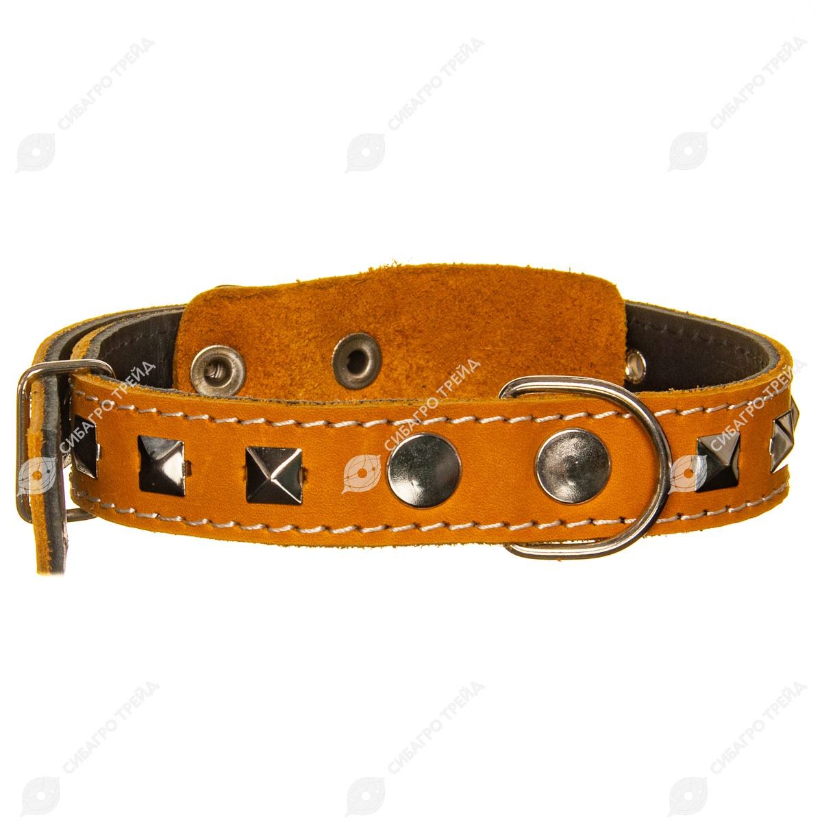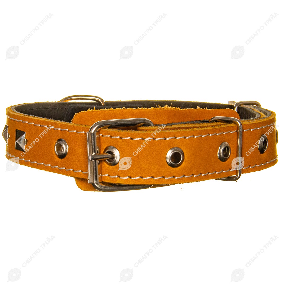 Изготовлен из натуральной кожи 3.1 - 3.5 мм. Прошитый капроновой нитью. Ширина 25 мм. Длина 59 см. Пряжка 25 мм. никель. Полукольцо 25 никель. Шлевка 25 мм. никель. Имеет 7 отверстий с люверсами 5 мм. Пряжка и полукольцо крепится 2 клепками. Обхват шеи от 34 см. до 53 см.