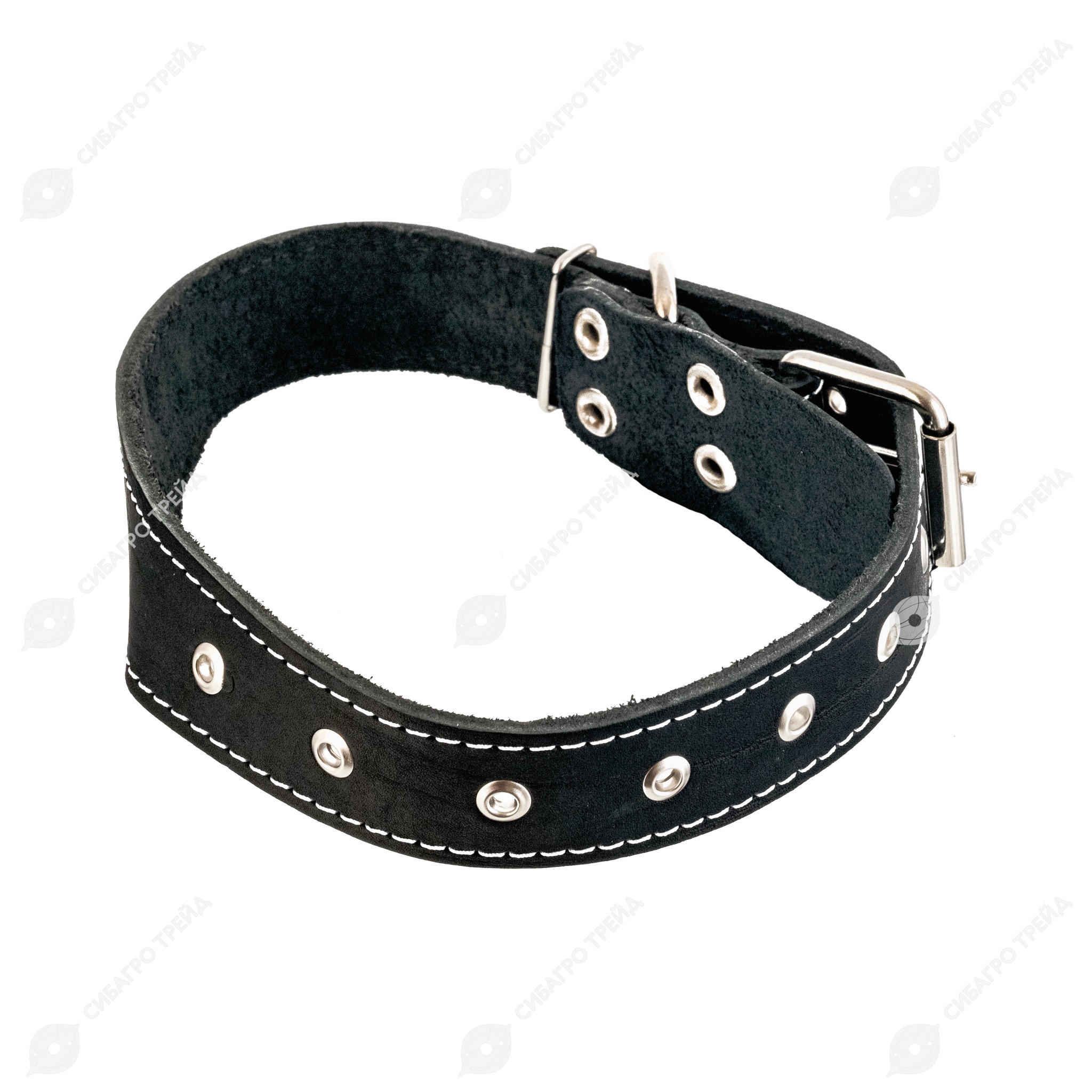Однослойный ошейник из натуральной кожи, прошит декоративной строчкой, отверстия укреплены металлической блочкой, полукольцо у пряжки.