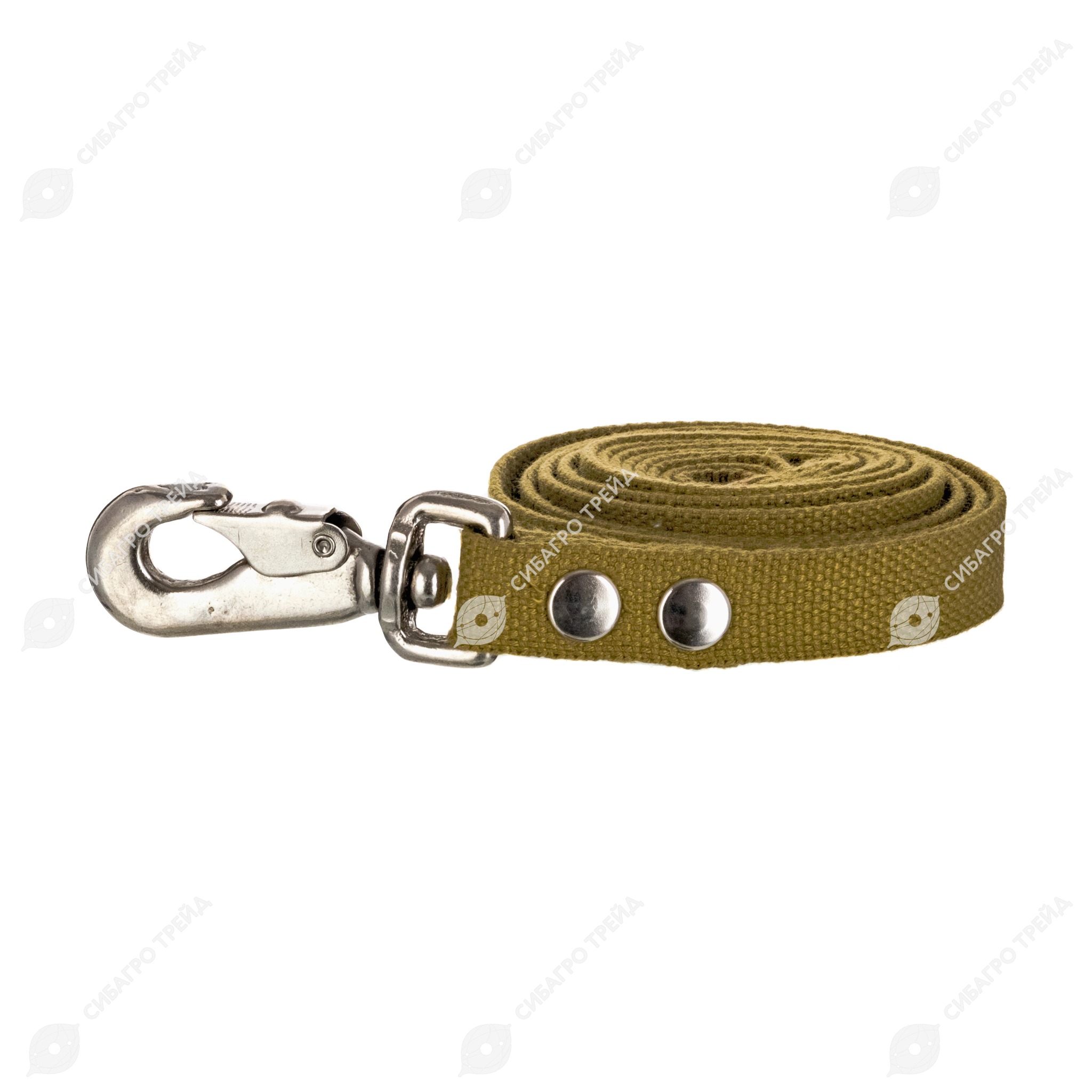 Поводок изготовлен из особо прочного брезентового каната. Длина: 2 метра. Усилен стальными клепками. Карабин выдерживает нагрузку до 300кг. Все материалы безвредны для животного.