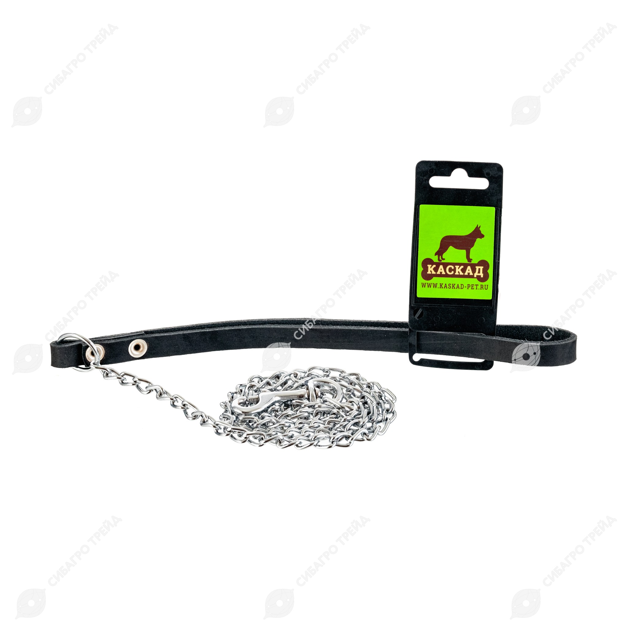 Поводок-цепь с кожаной ручкой, 1,2 м, КАСКАД