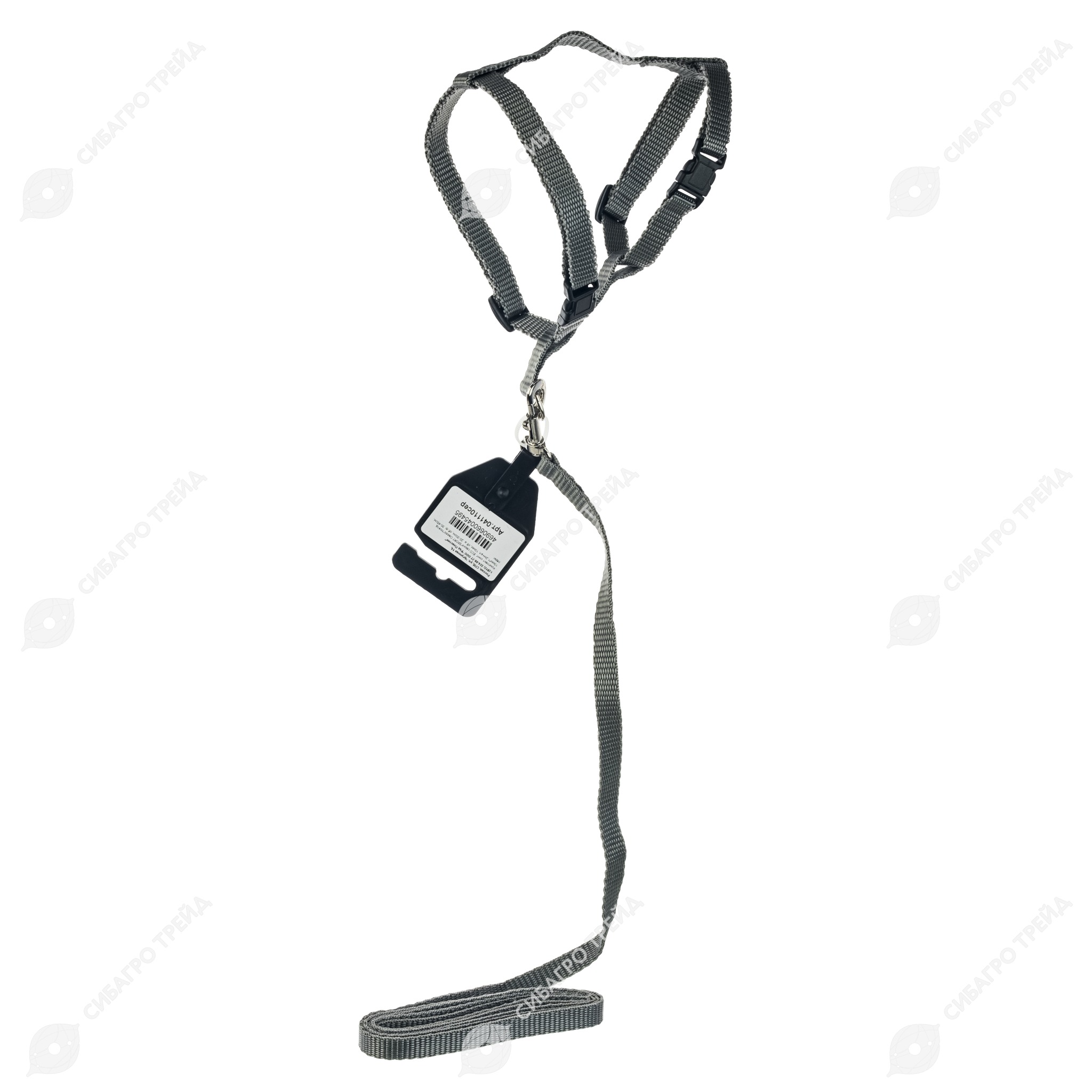 Благодаря фиксаторам длину ремешков шлейки можно регулировать. Поводок крепится к шлейке с помощью карабина.