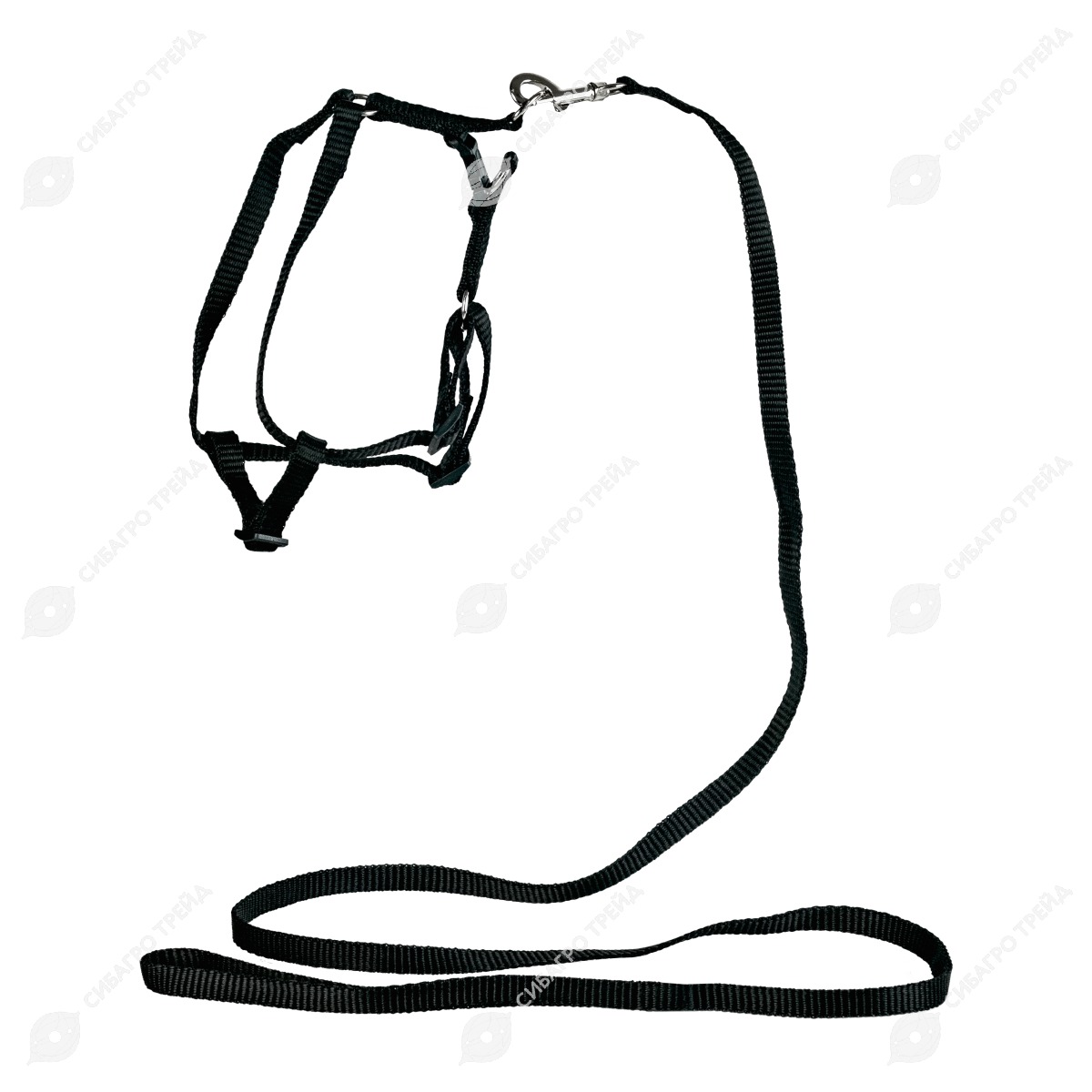 Комплект повод+шлейка (10 мм * 1,2 м), капроновый черный, ДАРЭЛЛ