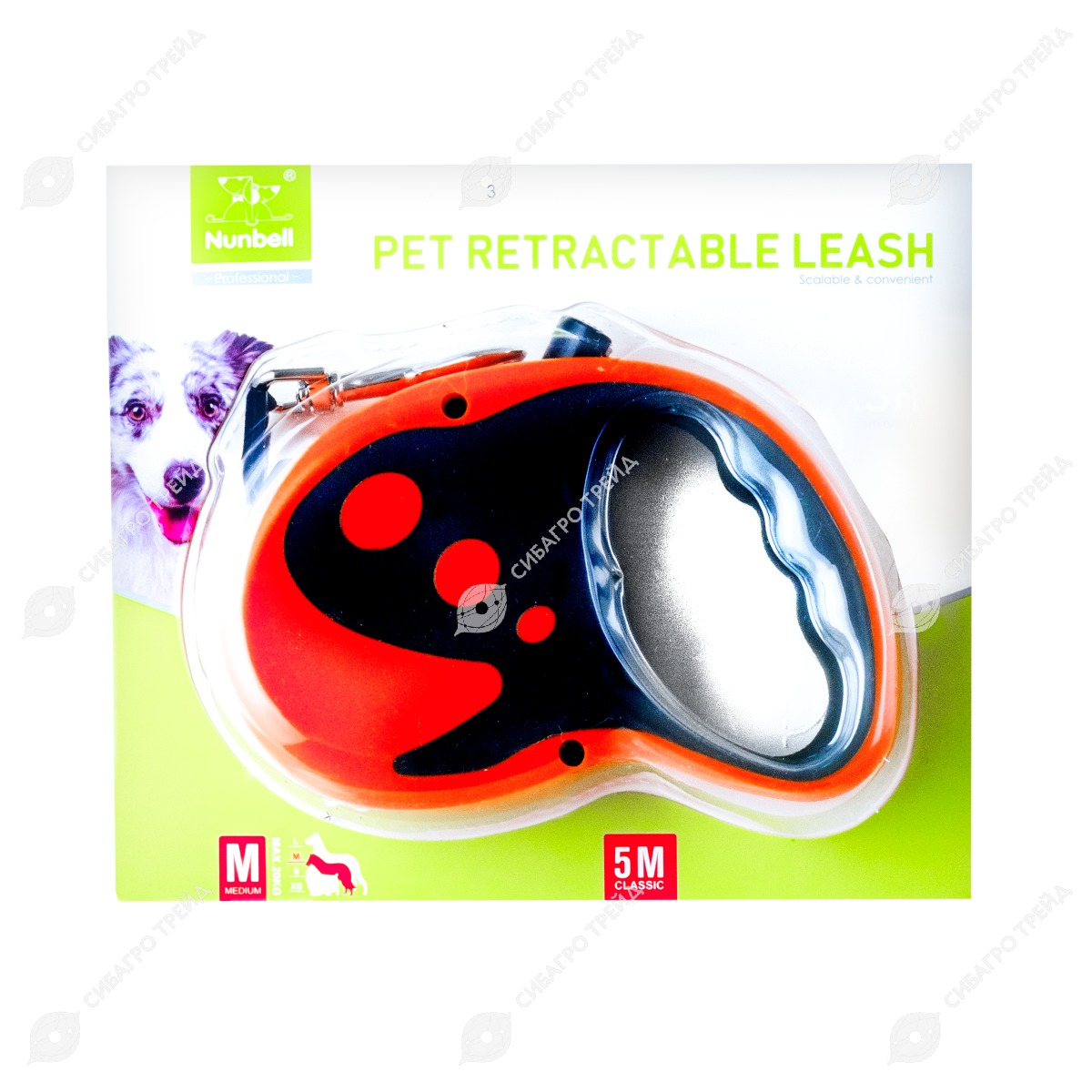 Поводок-рулетка для животных l=5 м до 20 кг, прорезиненная ручка, 2D-кнопка, микс, NUNBELL