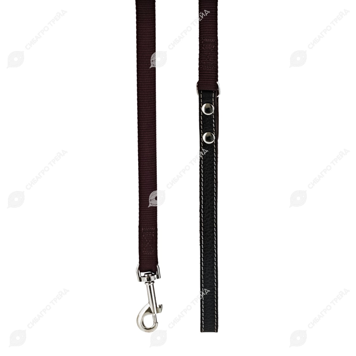 Поводок нейлоновый 2 метра, ширина 15 мм, ручка кожаная, ЧК