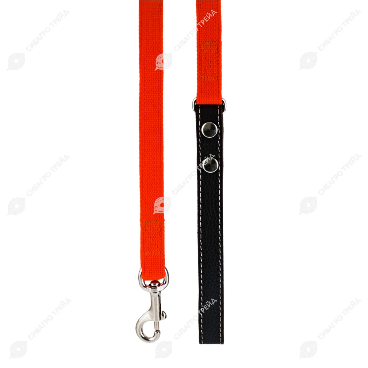 Поводок брезентовый 2 метра, ширина 20 мм, ручка кожаная (оранжевый), ЧК