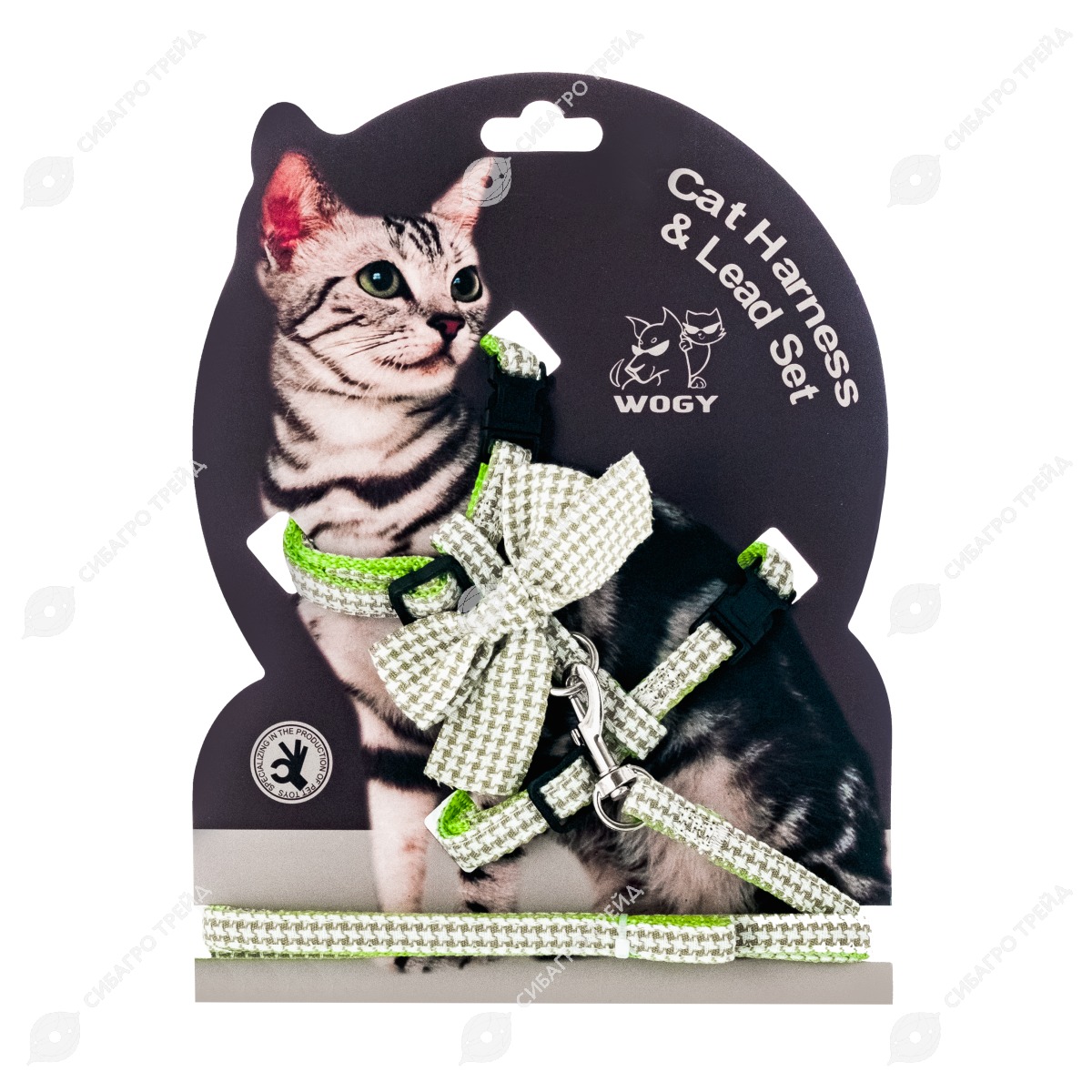 Набор для кошек 2пр. WOGY: поводок (120 * 1 см)+шлейка с бантом (10 * 6 см), микс