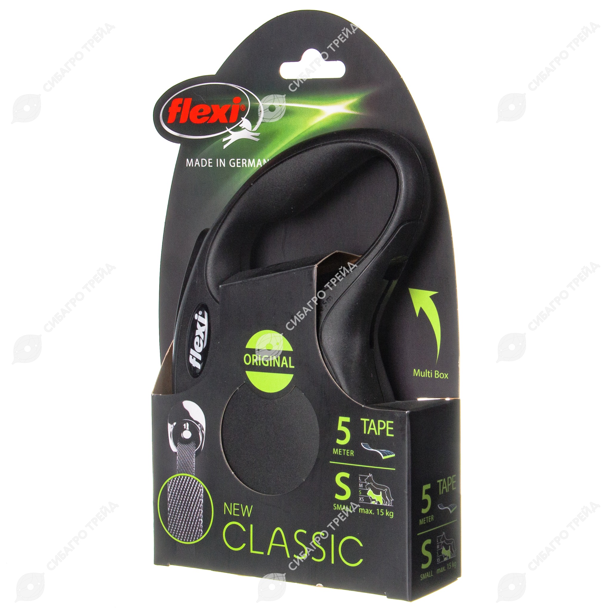 Рулетка CLASSIC S (5 м, 15 кг) ремень, чёрный, FLEXI