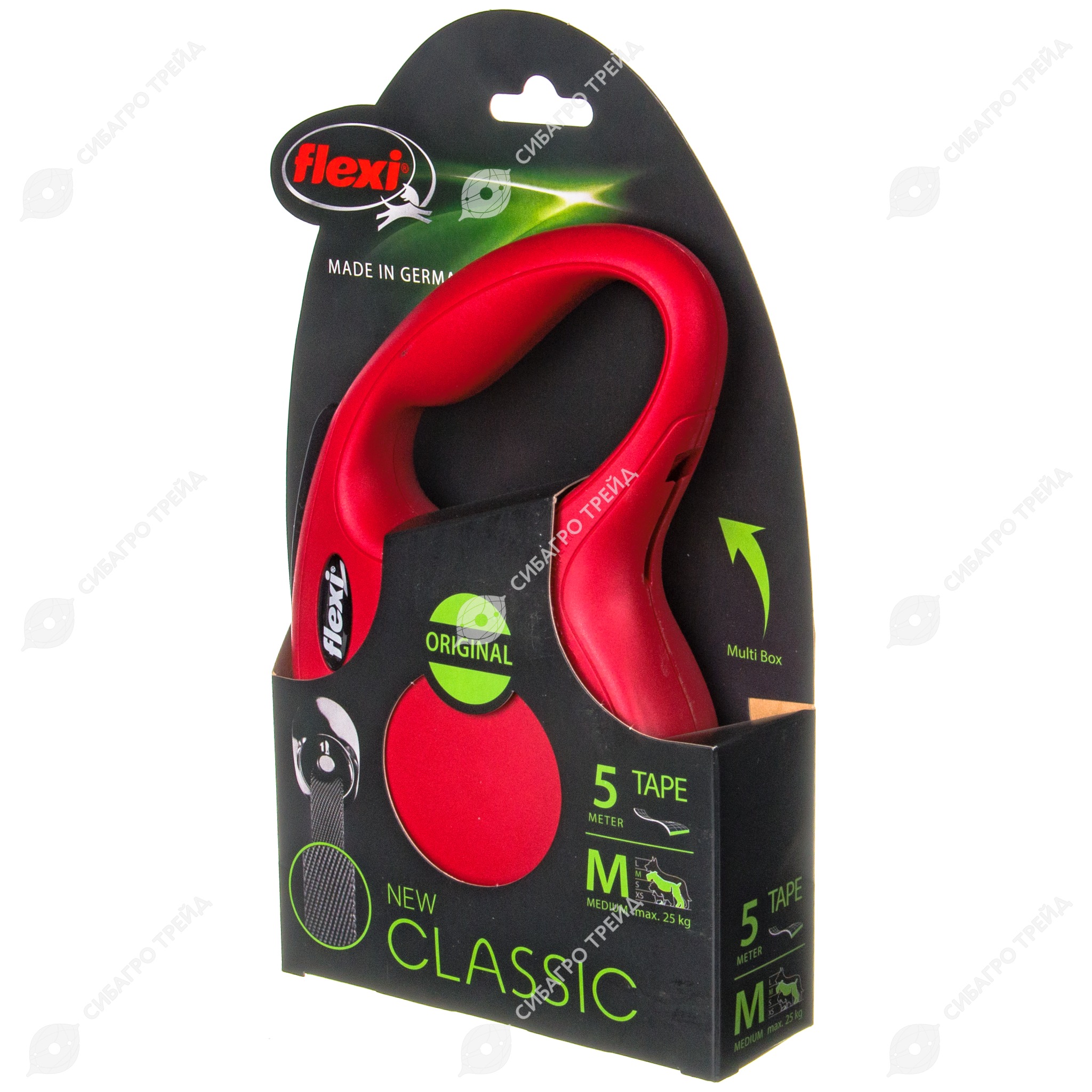 Рулетка CLASSIC M (5 м, 25 кг) ремень, красный, FLEXI