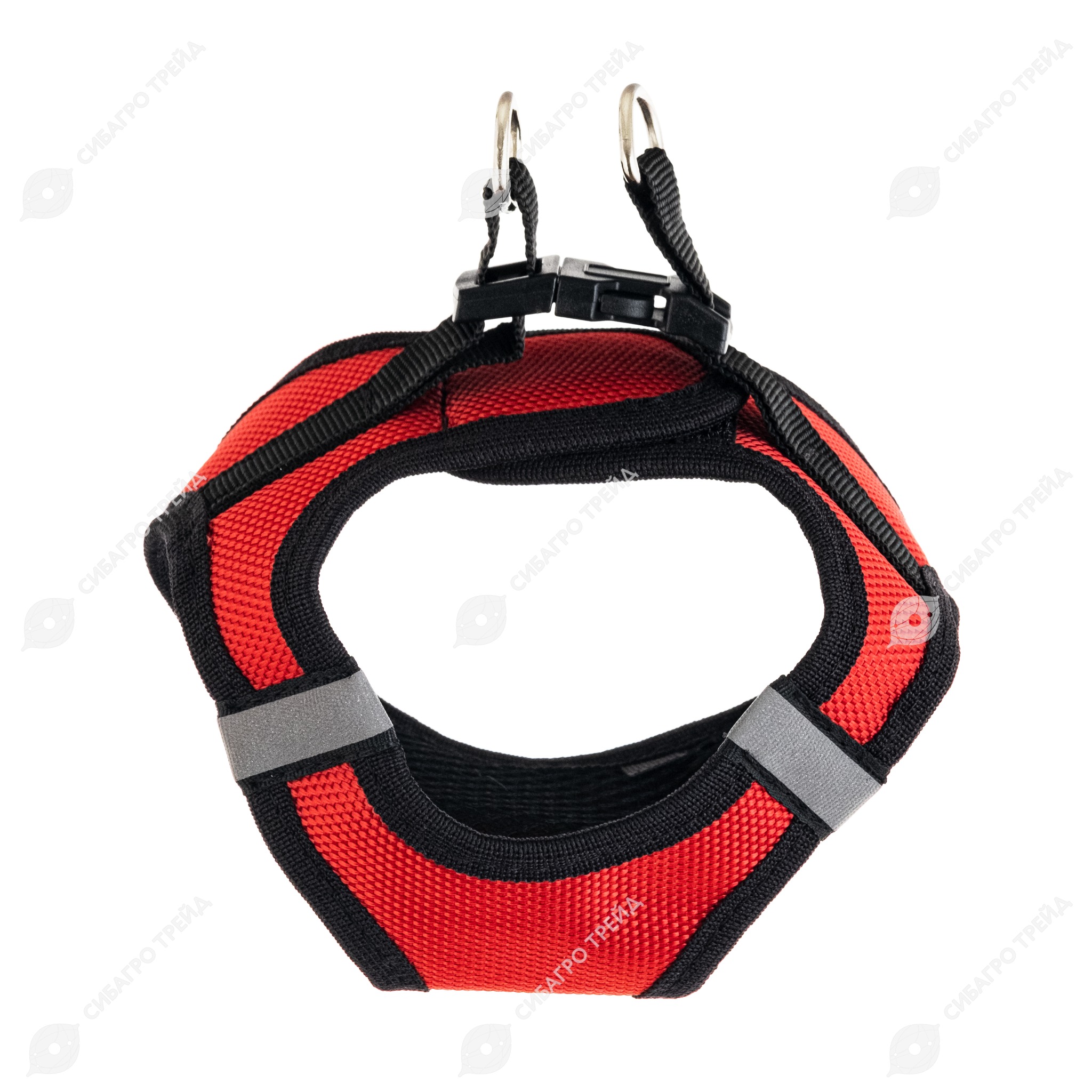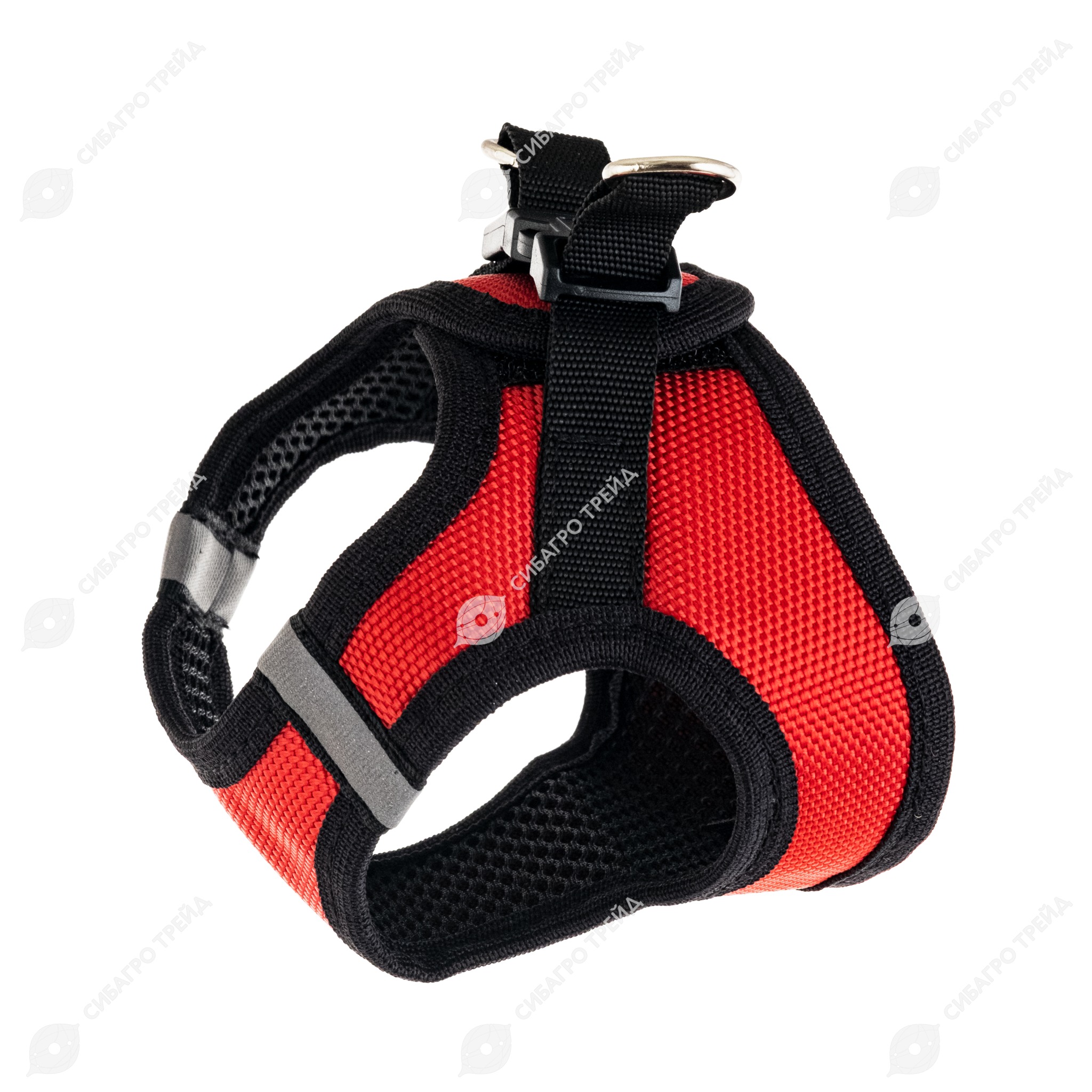 Трехслойная "дышащая" структура материала (кордюра - воздушная прослойка-сетчатое основание). Имеется светоотражающий элемент. Быстросъемная надежная крепежная система включает липучку (для более точной подгонки "по фигуре"), застежку-фастекс и два металлических кольца для крепления поводка. Размер для собак с обхватом груди (за передними лапами) от 23 до 28 см.