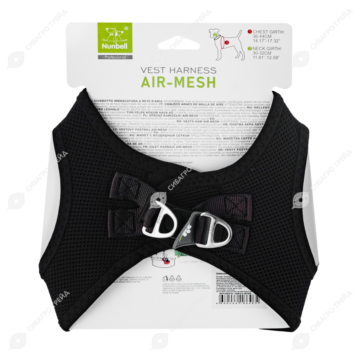 Шлейка-жилет для собак (обхват груди 36-44 см, 4-7 кг), анатомическая, размер M, микс, NUNBELL