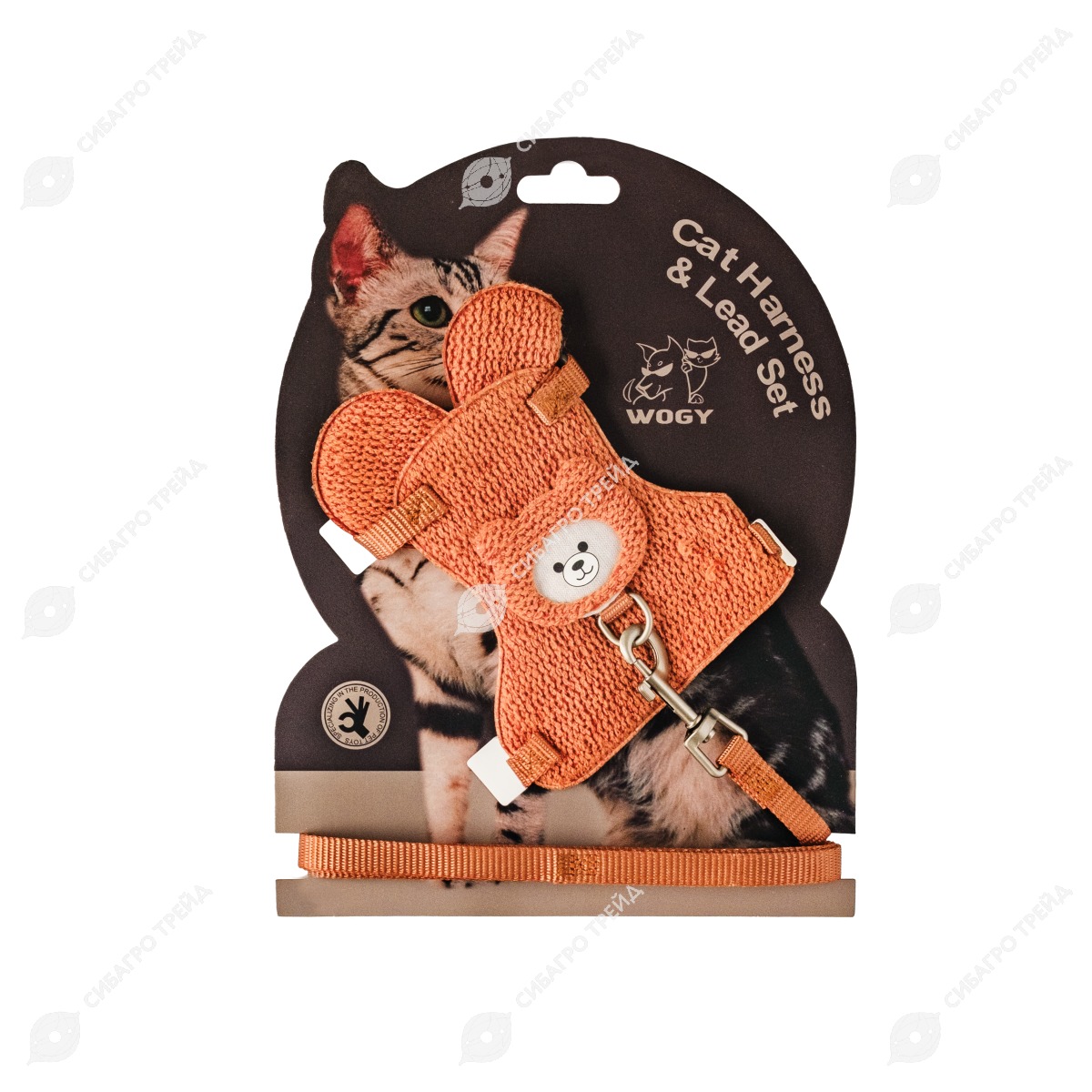 Шлейка WOGY Мишка (13 * 10,5 см) с поводком (120 * 1 см) для кошек, микс
