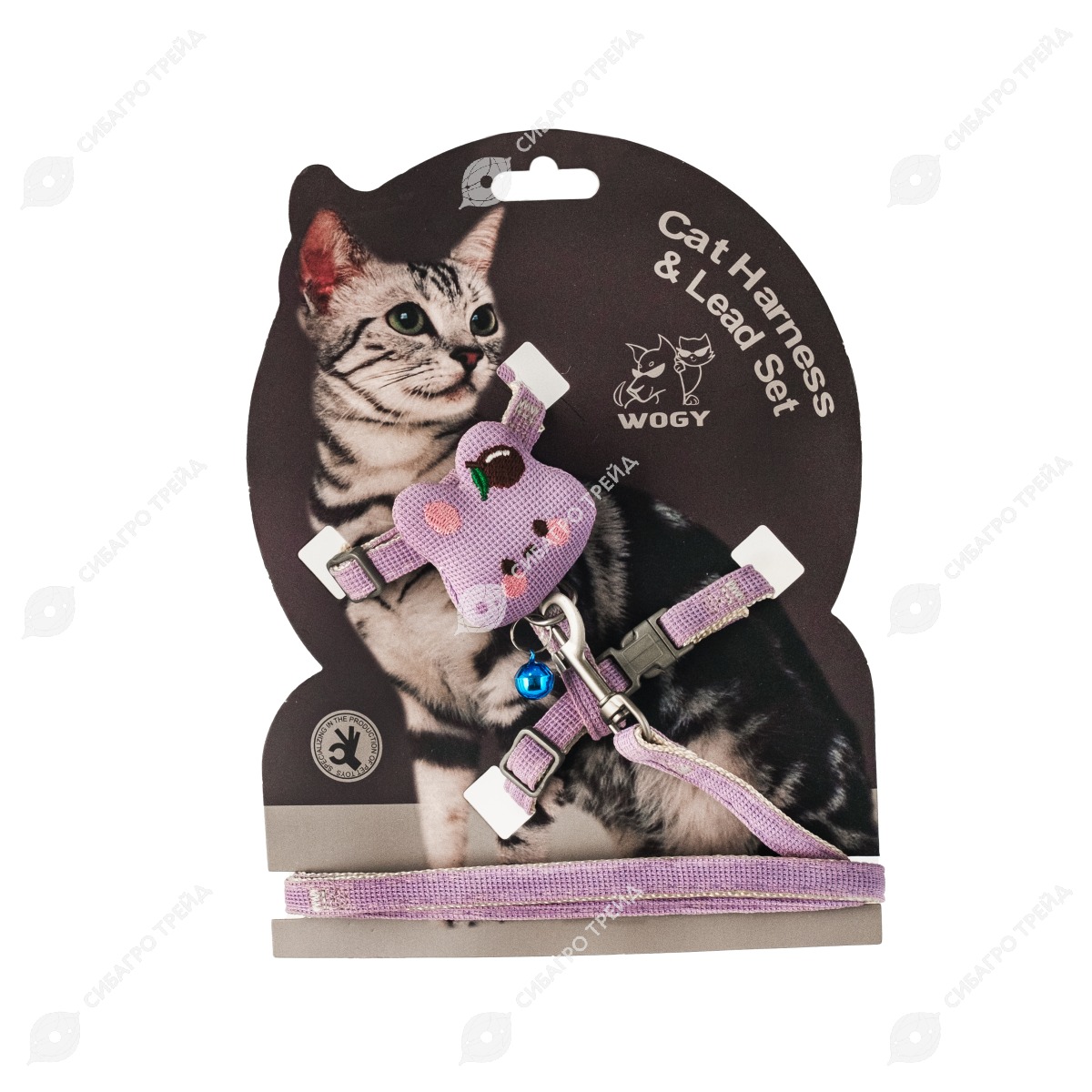 Шлейка WOGY Кошечка (5 * 4,5 см) с поводком (120 * 1 см) для кошек, колокольчик, микс