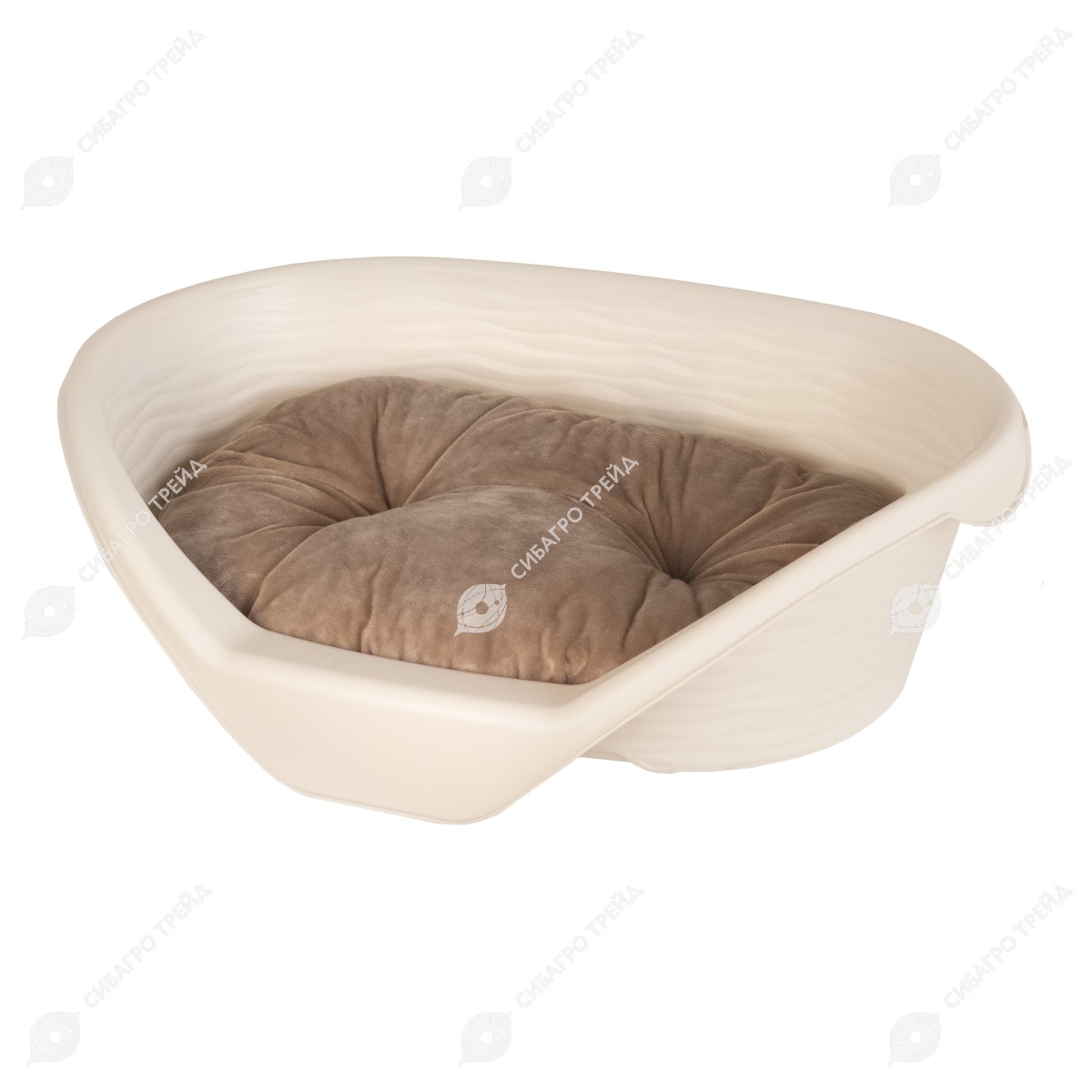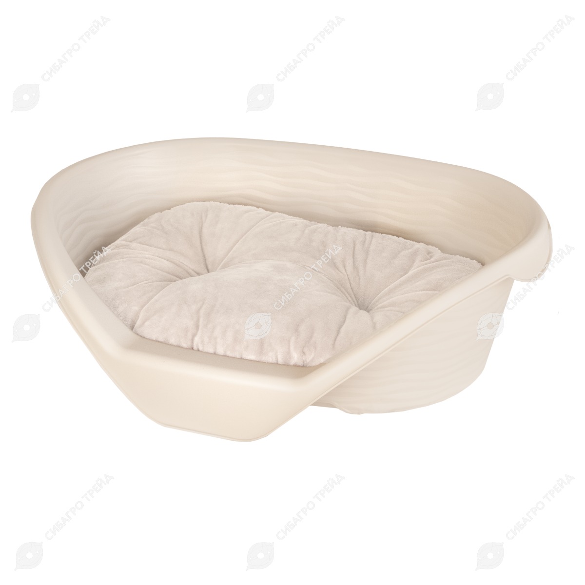 Лежак для кошек и собак пластиковый (610 * 415 * 205 мм) с подушкой, бежевый, АЛЬТЕРНАТИВА