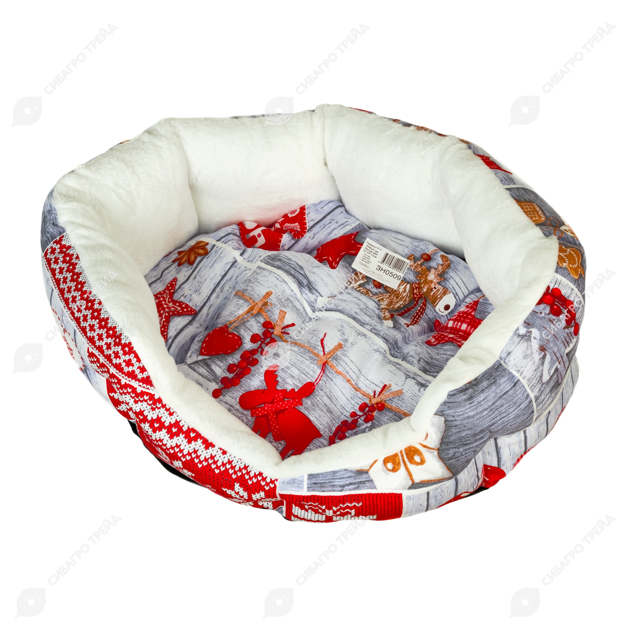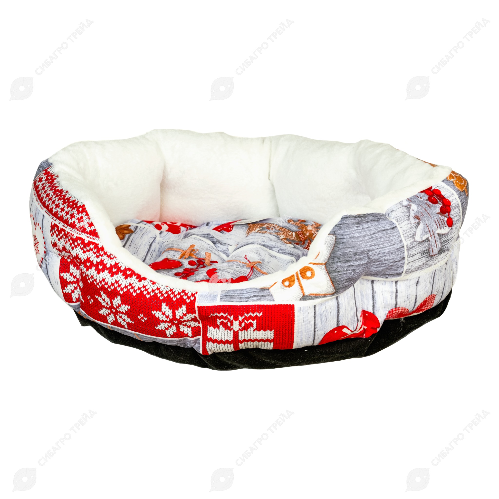 Лежанка НОВЫЙ ГОД №1 белый мех (55 * 45 * 16 см), BLACK CAT