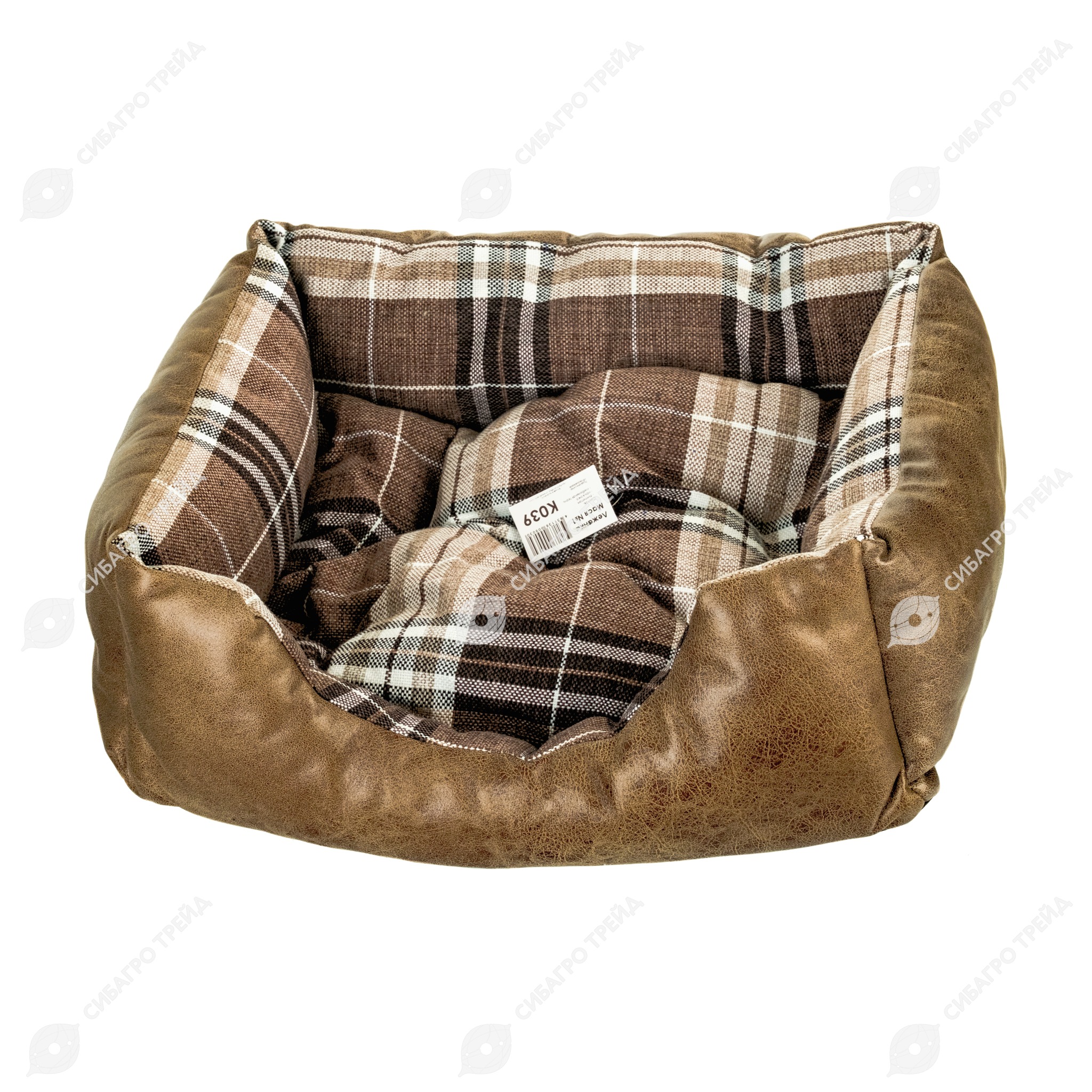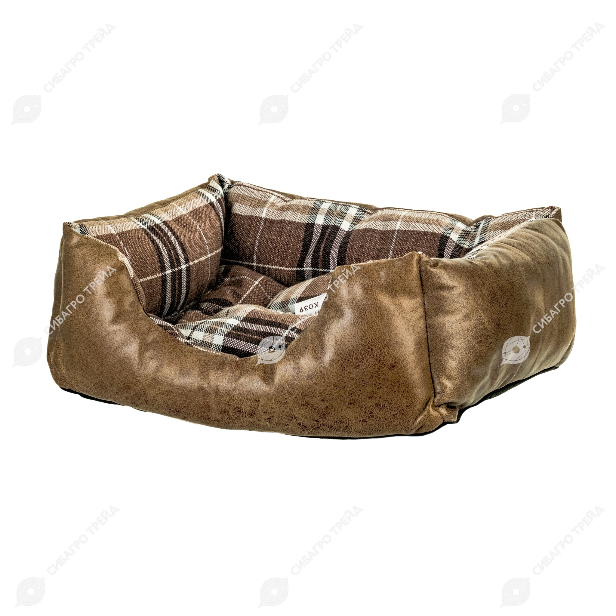 Лежанка для кошек и собак. Состоит из иск. кожи, мебельной ткани и синтепона. Имеется съемная подушка, состоящая из мебельной ткани и синтепона.