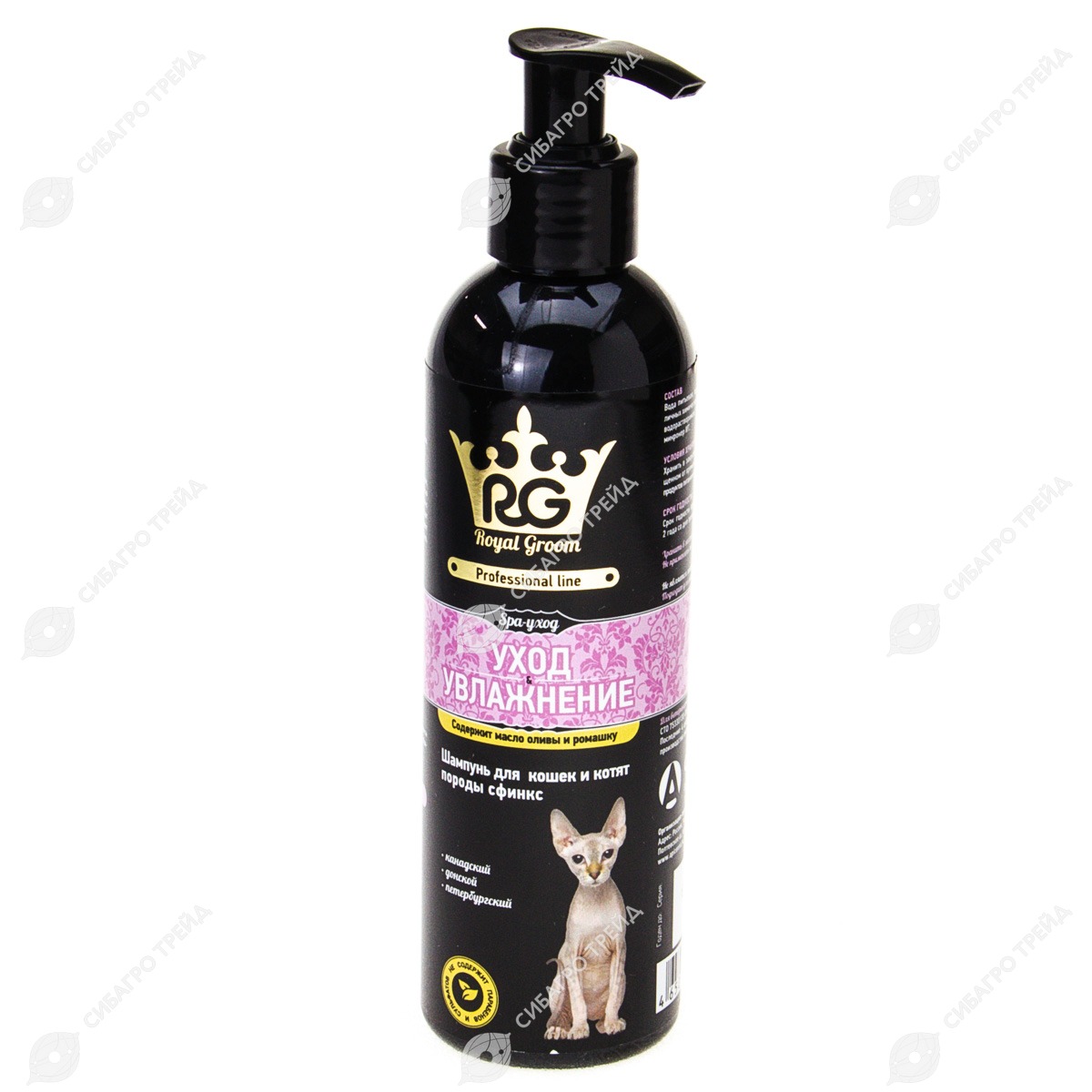 ROYAL GROOM шампунь для кошек породы сфинкс УХОД И УВЛАЖНЕНИЕ, 200 мл