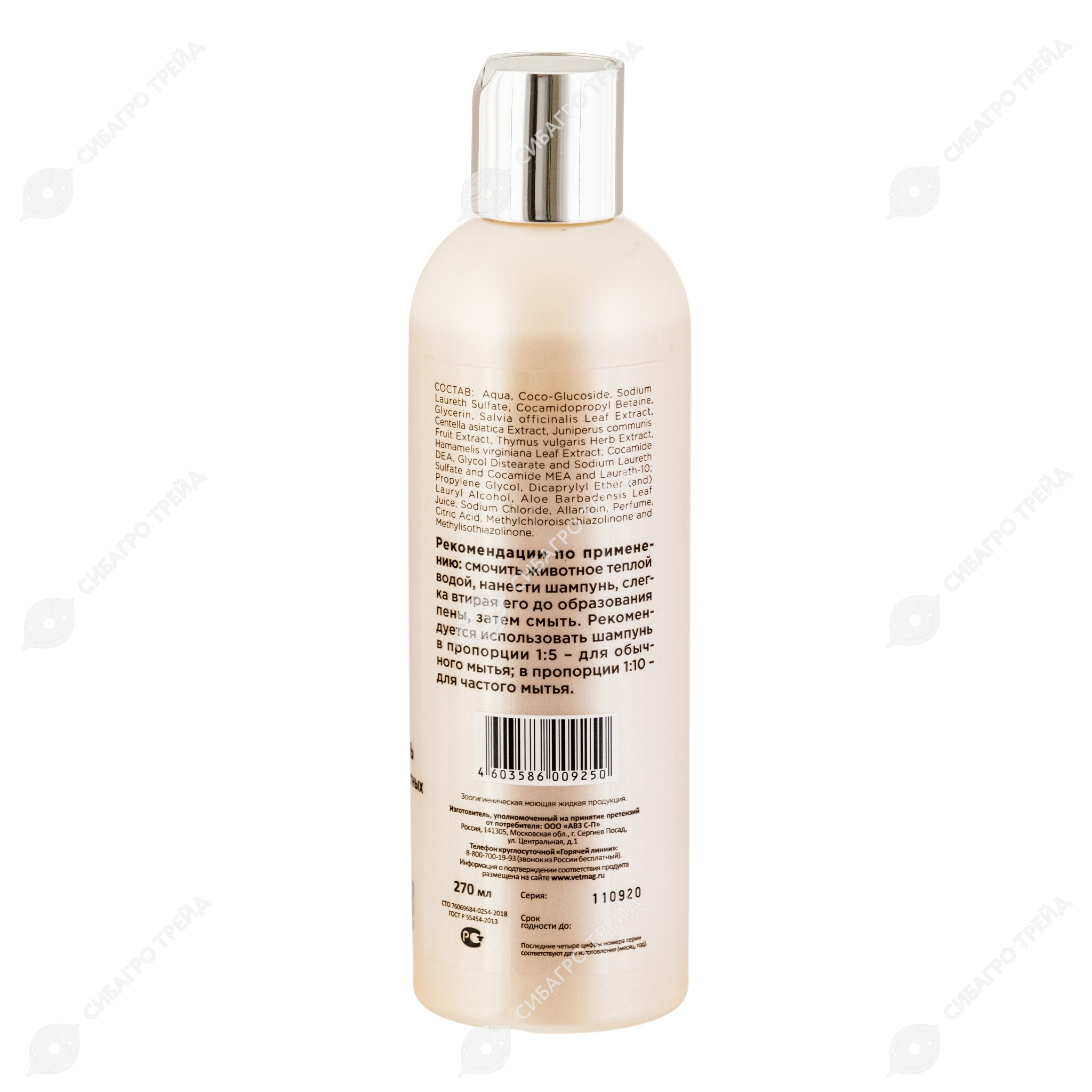Этот шампунь создан специально для профессионального ухода за кожей бесшерстных собак кошек. Мягкий моющий комплекс, увлажняющие компоненты, экстракты шалфея, центеллы азиатской, можжевельника, тимьяна, лесного ореха, алое вера гель, аллантоин обеспечивают мягкое очищение и бережный уход за нежной кожей собак и кошек бесшерстных пород.