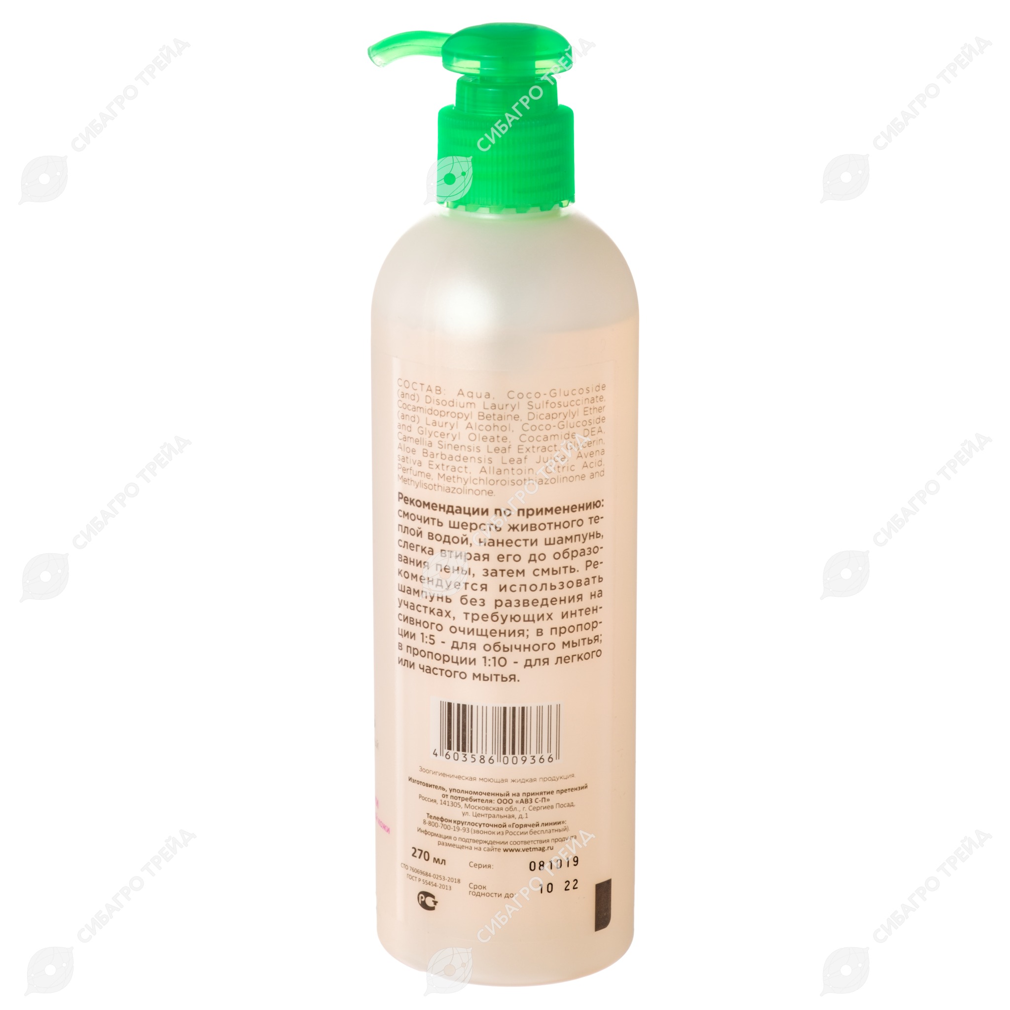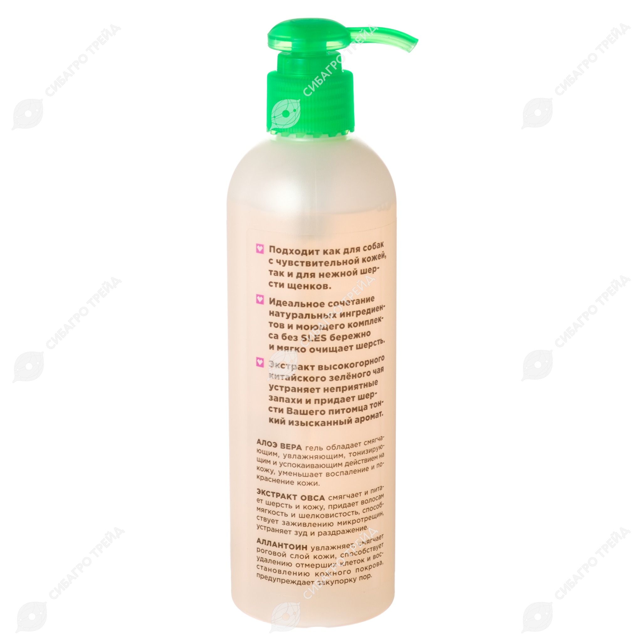 Очень мягкий моющий комплекс бережно очищает шерсть, не нарушая ее структуры, натуральные ингредиенты: Алое Вера, экстракты овса и зеленого чая и аллантоин питают и укрепляют волосы, повышают их прочность, упругость, наполняя шерсть жизненной силой. Экстракт высокогорного китайского зелёного чая устраняет неприятные запахи и придает шерсти Вашего питомца тонкий изысканный аромат. Без SLES.