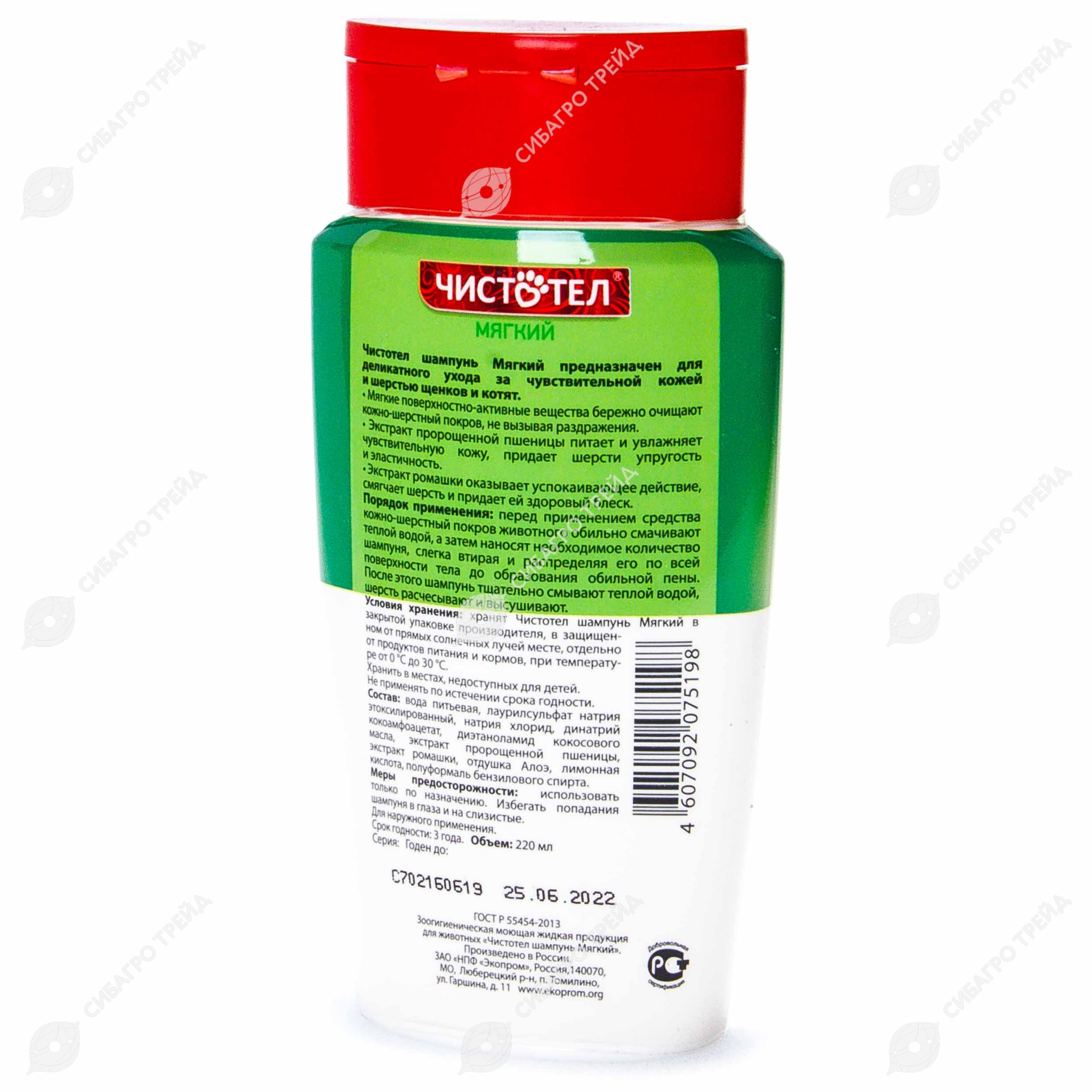 ЧИСТОТЕЛ МЯГКИЙ шампунь для щенков и котят, 220 мл