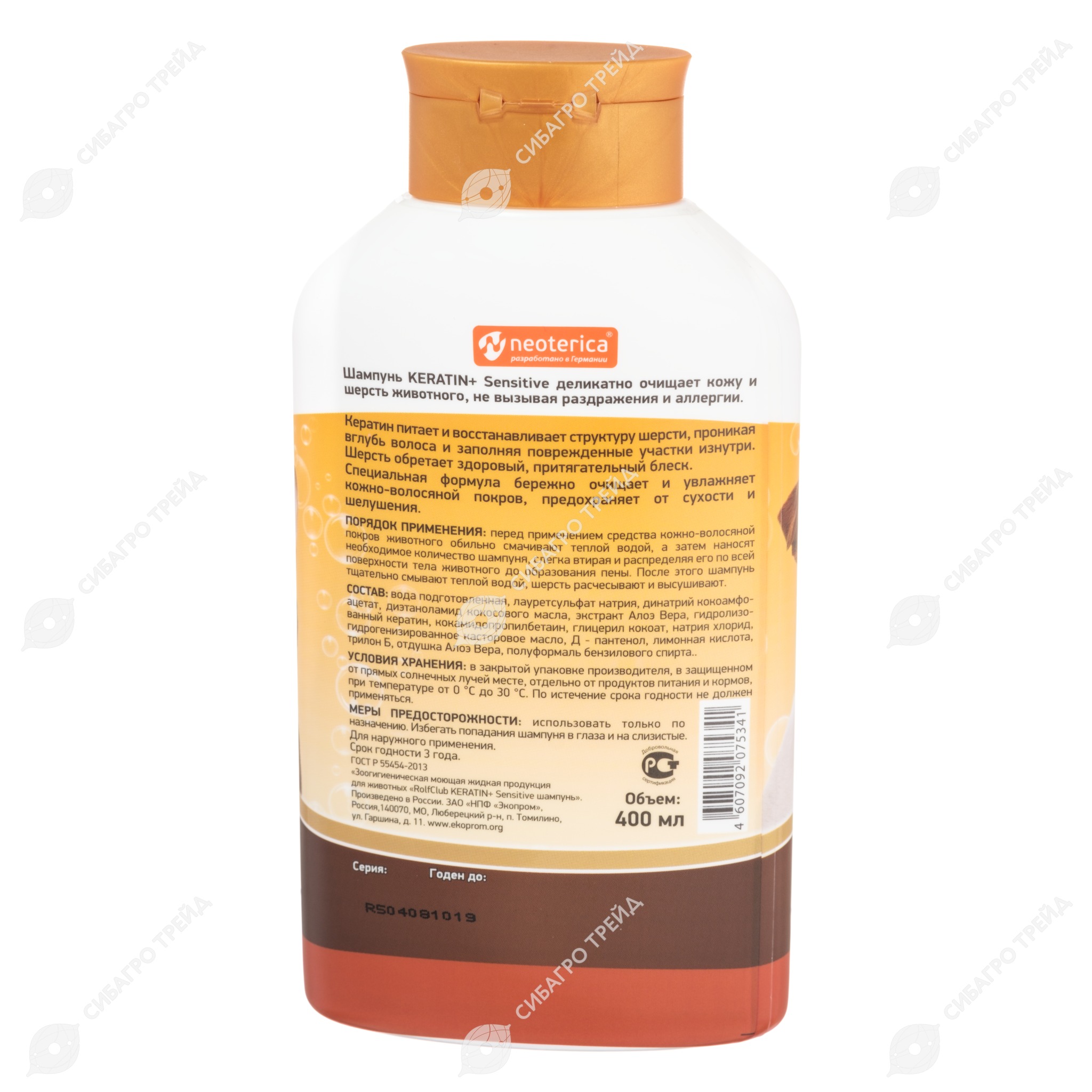 RolfClub KERATIN+ Sensitive шампунь – косметико-гигиеническое средство для ухода за кожно-шерстным покровом животных.