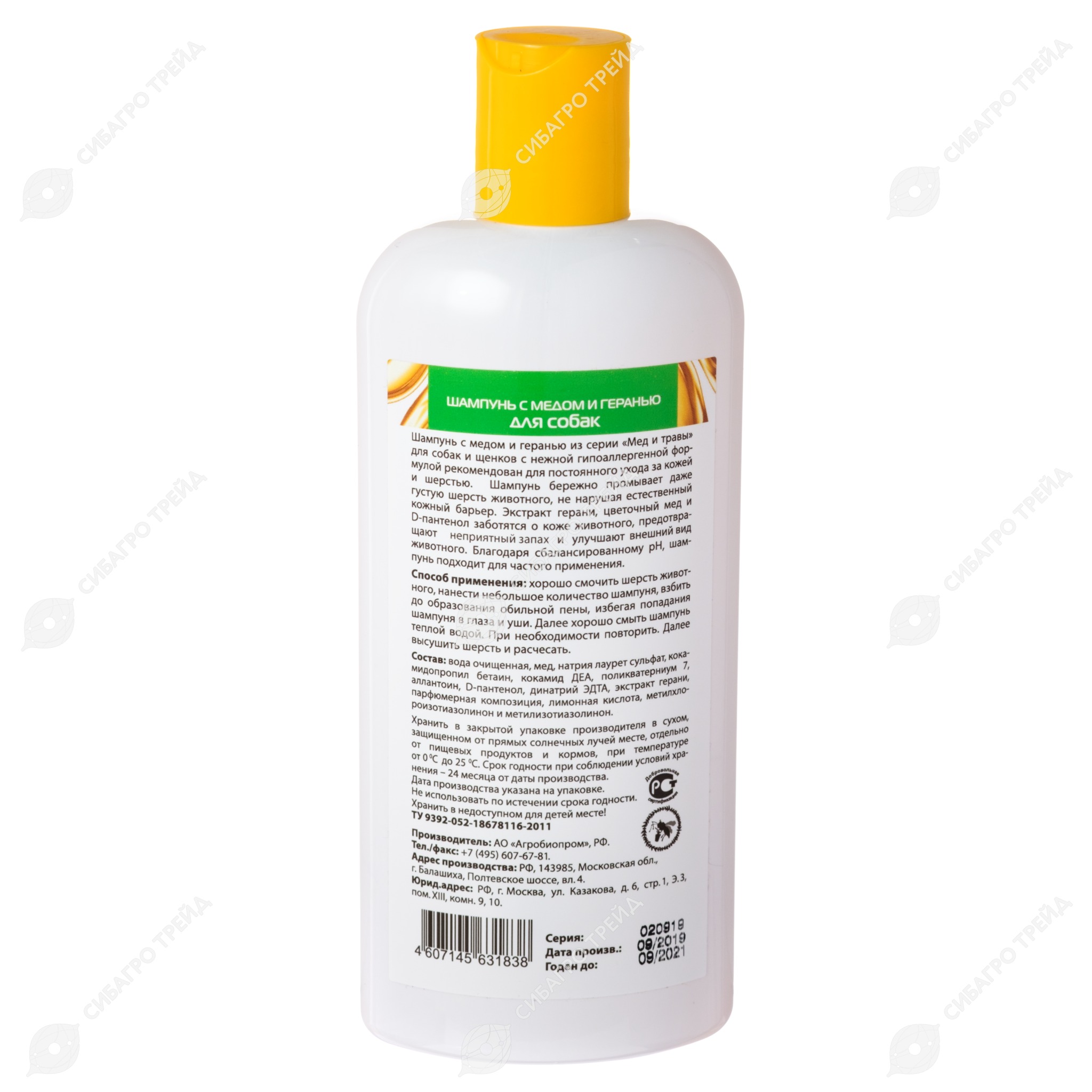 ПЧЕЛОДАР шампунь косметический для собак (МЁД, ГЕРАНЬ), 250 мл