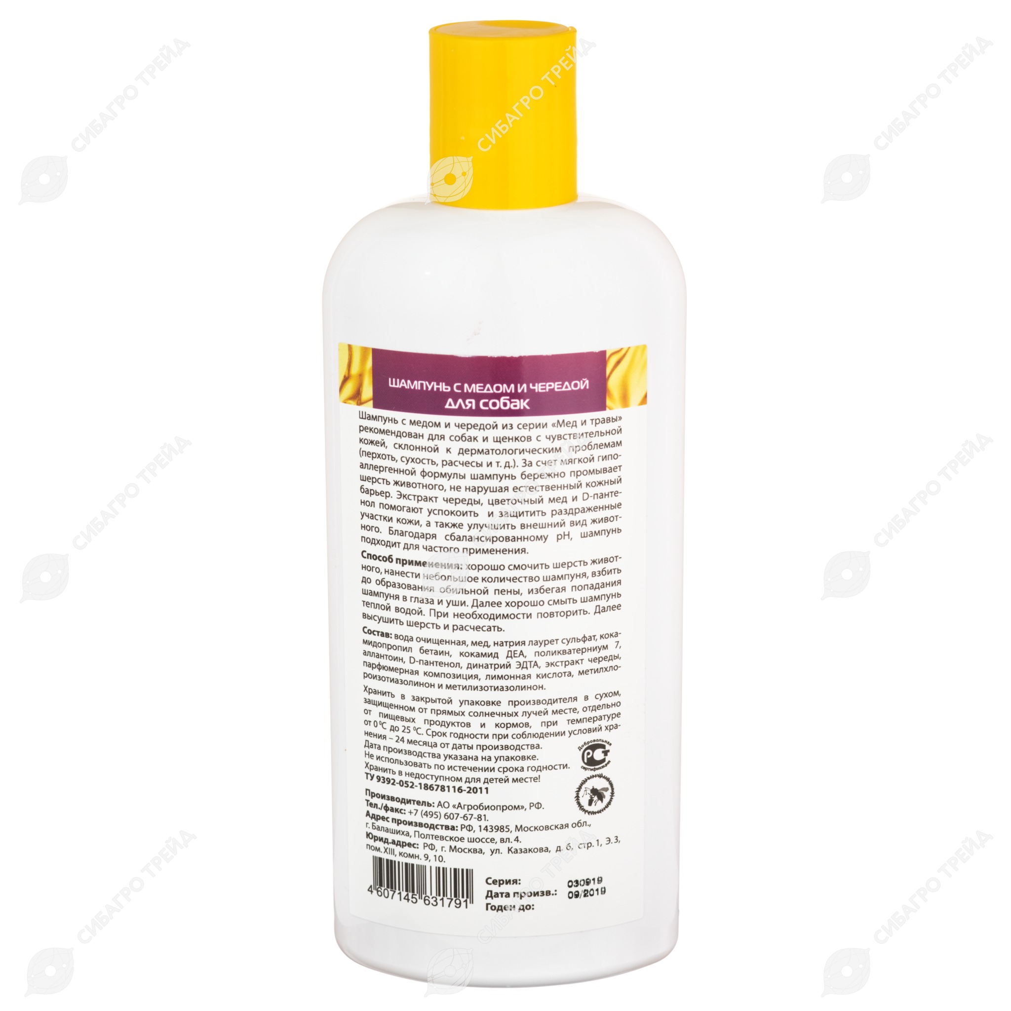 Шампуни глубоко увлажняют, смягчают и питают кожу животного, устраняют сухость и шелушения, помогают восстановить защитный слой. Натуральные компоненты косметических шампуней серии Мед и травы позволяют применять их для животных с чувствительной кожей, склонной к аллергическим реакциям, а также щенкам и котятам. Шампунь с медом и чередой подходит для собак с чувствительной кожей, склонной к дерматитам. Входящий в состав натуральный экстракт череды снимает воспаление, успокаивает раздраженные участки кожи, устраняет зуд, способствует заживлению мелких ран и расчесов.