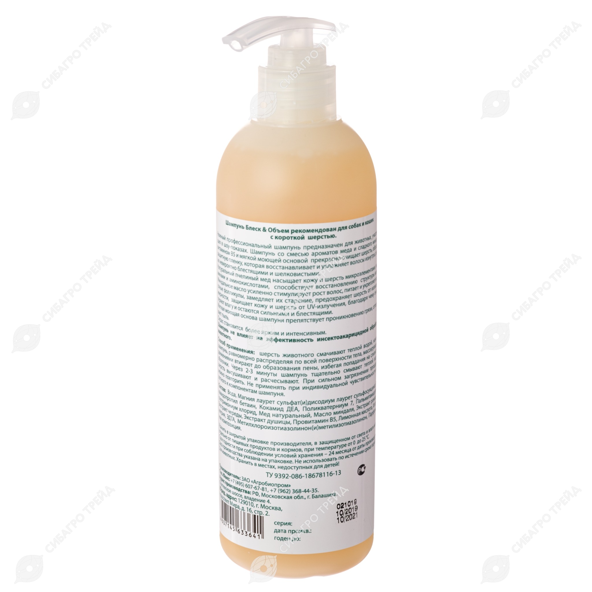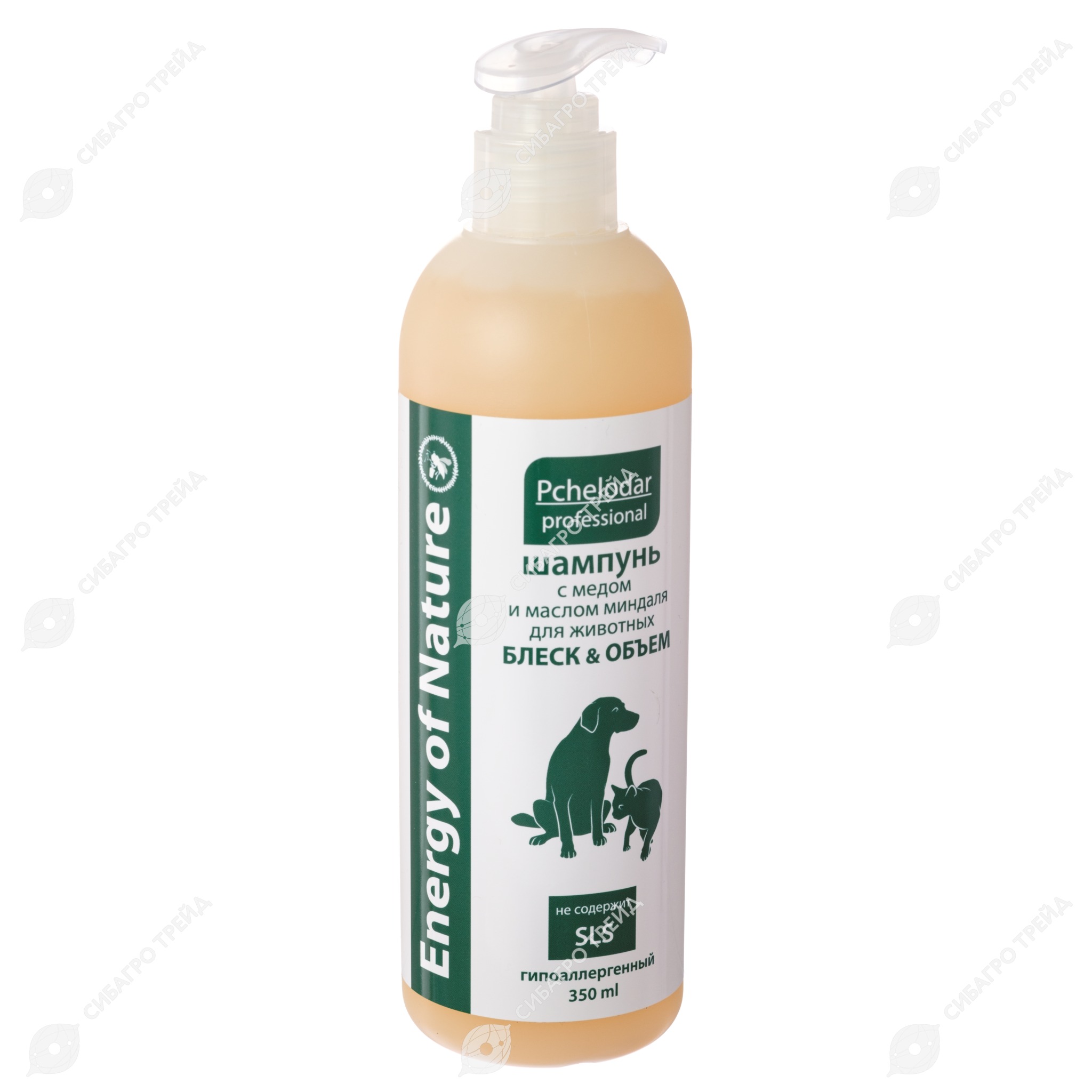 ENERGY OF NATURE шампунь Блеск&Объём для собак и кошек (МЁД, МАСЛО МИНДАЛЯ), 350 мл