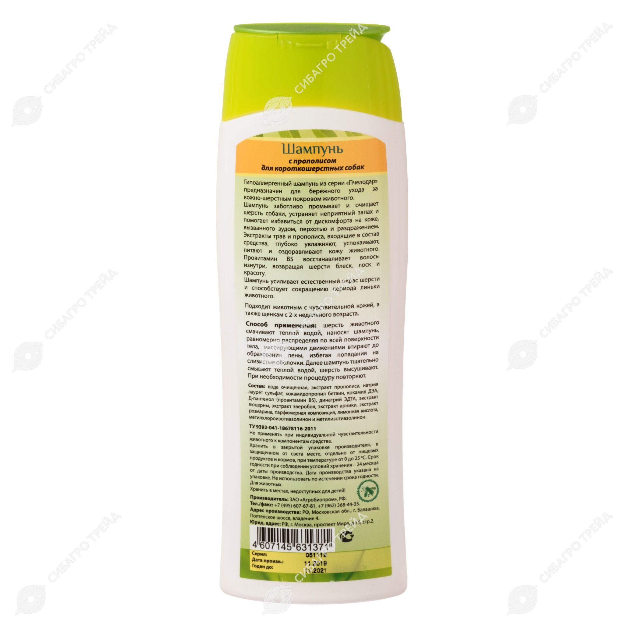 ПЧЕЛОДАР шампунь гигиенический для короткошёрстных собак (ПРОПОЛИС), 250 мл