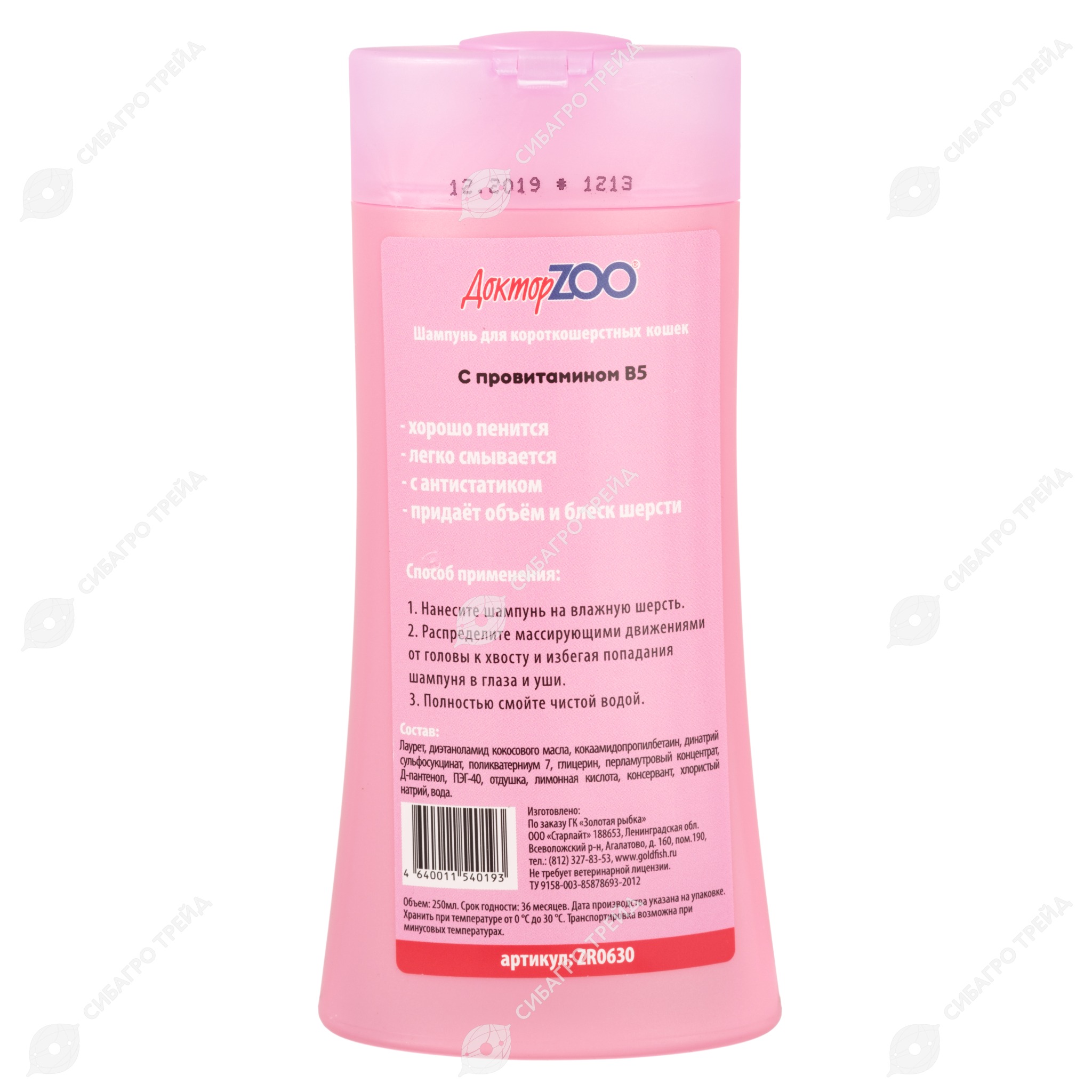 Способ применения: шампунь нанести на обильно смоченную водой шерсть. Равномерно распределить по всему телу и слегка втирать до образования обильной пены. Смыть чистой водой.