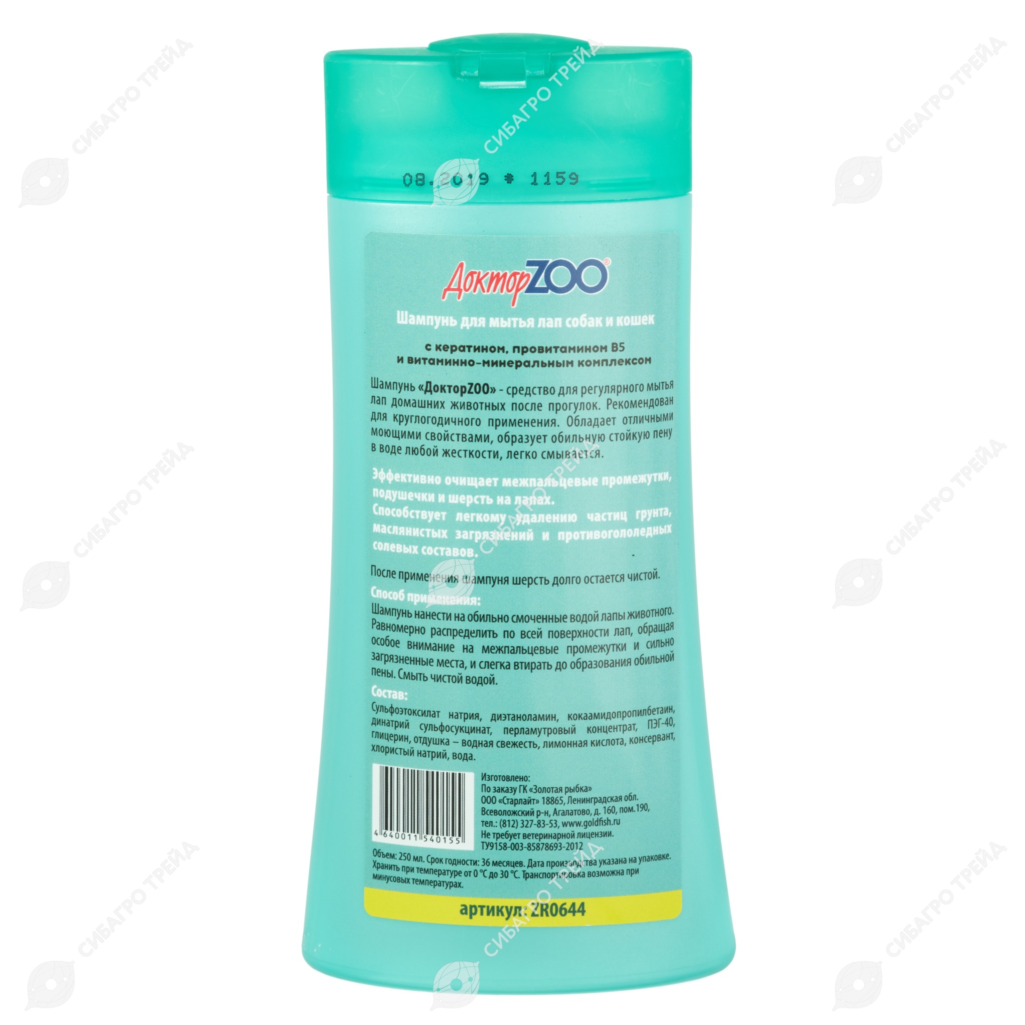 ДОКТОРZOO шампунь для собак и кошек ДЛЯ МЫТЬЯ ЛАП, 250 мл