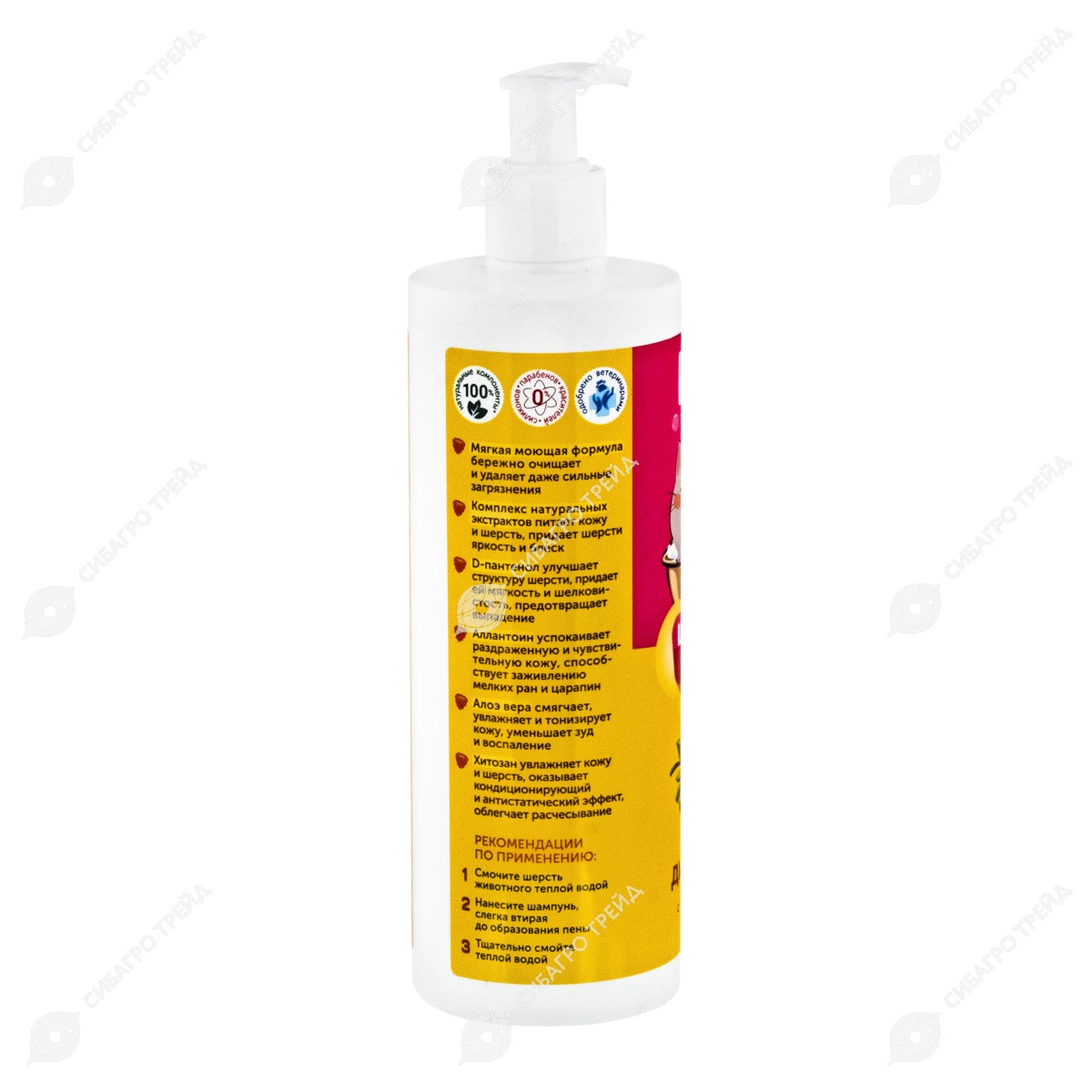 В своем составе в качестве зоогигиенических ингредиентов шампунь содержит: воду очищенную, лауретсульфат натрия, сорбитол, глицерин, кокамидопропил бетаин, карбоксиметилцеллюлозу натрия, экстракт плодов черники, экстракт сахарного тростника, экстракт американского клена, экстракт плодов апельсина, экстракт плодов лимона, D-пантенол, хитозан, алоэ вера гель, отдушку, аллантоин, метилхлороизотиазолинон и метилизотиазолинон.