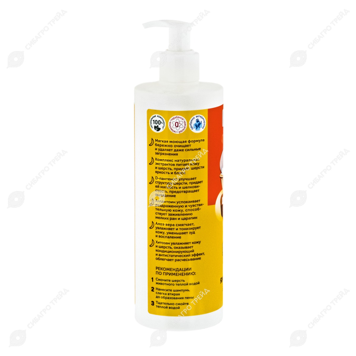 В своем составе в качестве зоогигиенических ингредиентов шампунь содержит: воду очищенную, лауретсульфат натрия, сорбитол, глицерин, кокамидопропил бетаин, карбоксиметилцеллюлозу натрия, экстракт плодов черники, экстракт сахарного тростника, экстракт американского клена, экстракт плодов апельсина, экстракт плодов лимона, D-пантенол, хитозан, алоэ вера гель, отдушку, аллантоин, метилхлороизотиазолинон и метилизотиазолинон.