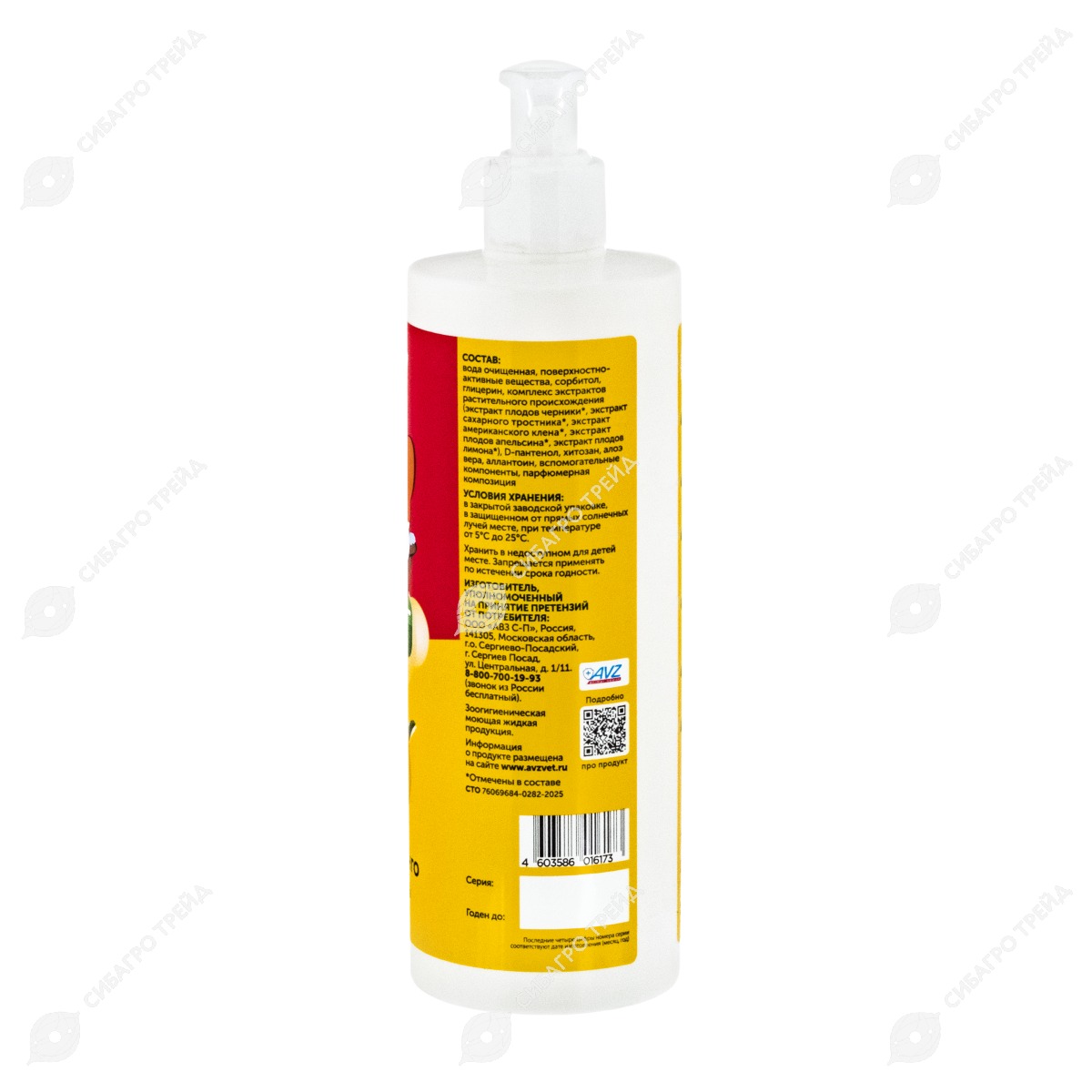 В своем составе в качестве зоогигиенических ингредиентов шампунь содержит: воду очищенную, лауретсульфат натрия, сорбитол, глицерин, кокамидопропил бетаин, карбоксиметилцеллюлозу натрия, экстракт плодов черники, экстракт сахарного тростника, экстракт американского клена, экстракт плодов апельсина, экстракт плодов лимона, D-пантенол, хитозан, алоэ вера гель, отдушку, аллантоин, метилхлороизотиазолинон и метилизотиазолинон.