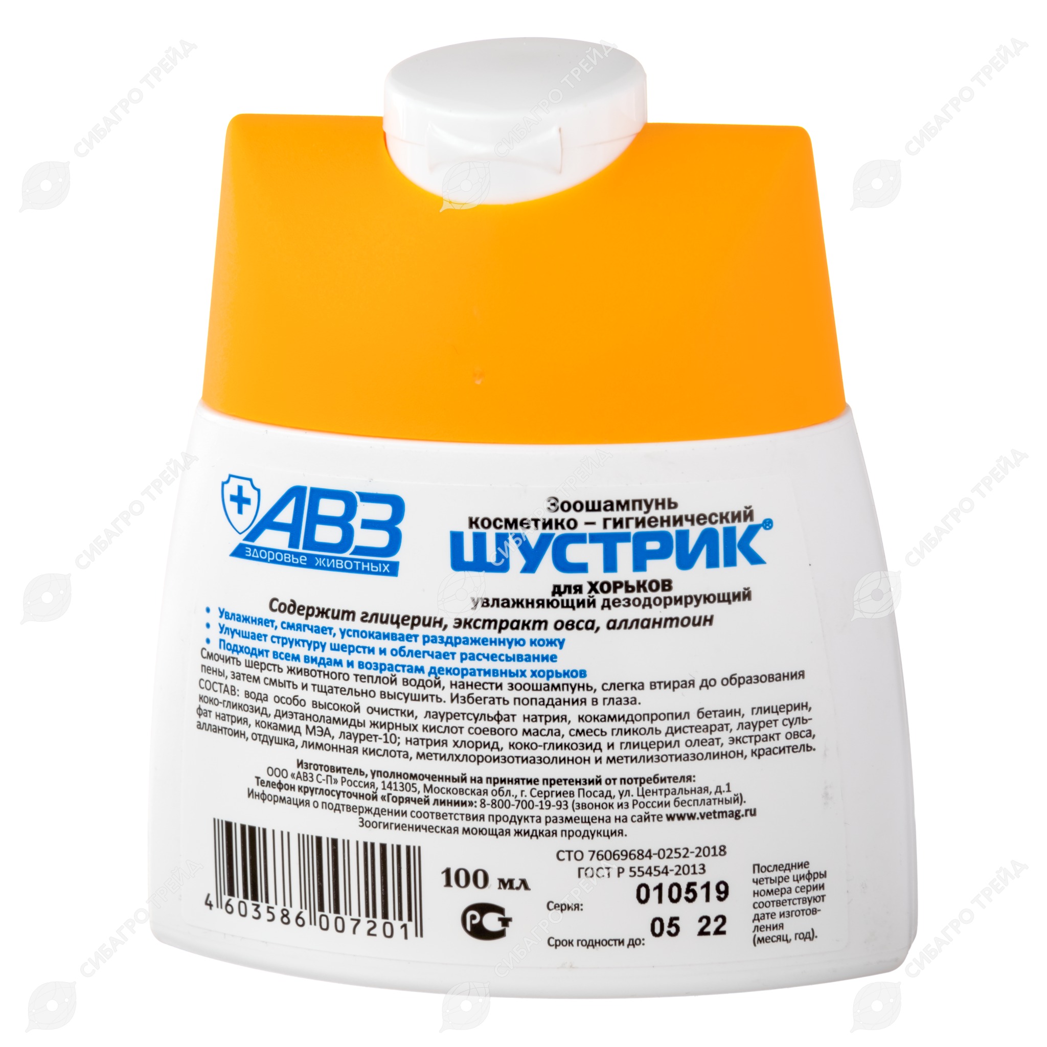 Зоошампунь «Шустрик» представляет собой моющее средство для регулярного бережного ухода за кожно-волосяным покровом хорьков. Зоошампунь сочетает в себе мягкий моющий и увлажняющий комплекс, а также натуральные компоненты, обладающие антистатическим действием. Входящий в состав зоошампуня глицерин активизирует обменные процессы в волосяных луковицах и коже. Экстракт овса, благодаря содержанию в нем сапонинов, флавоноидов, различных минеральных солей, алкалоидов, витаминов В1, В2, D, Е, каротина, белка (клейковина), крахмала и жиров, обладает тонизирующим действием, стимулирует рост волосяного стержня. Аллантоин оказывает увлажняющее, смягчающее действие, снимает раздражение. Натуральные биологически активные вещества эффективно устраняют специфический запах хорьков, придают шерсти приятный аромат свежести.