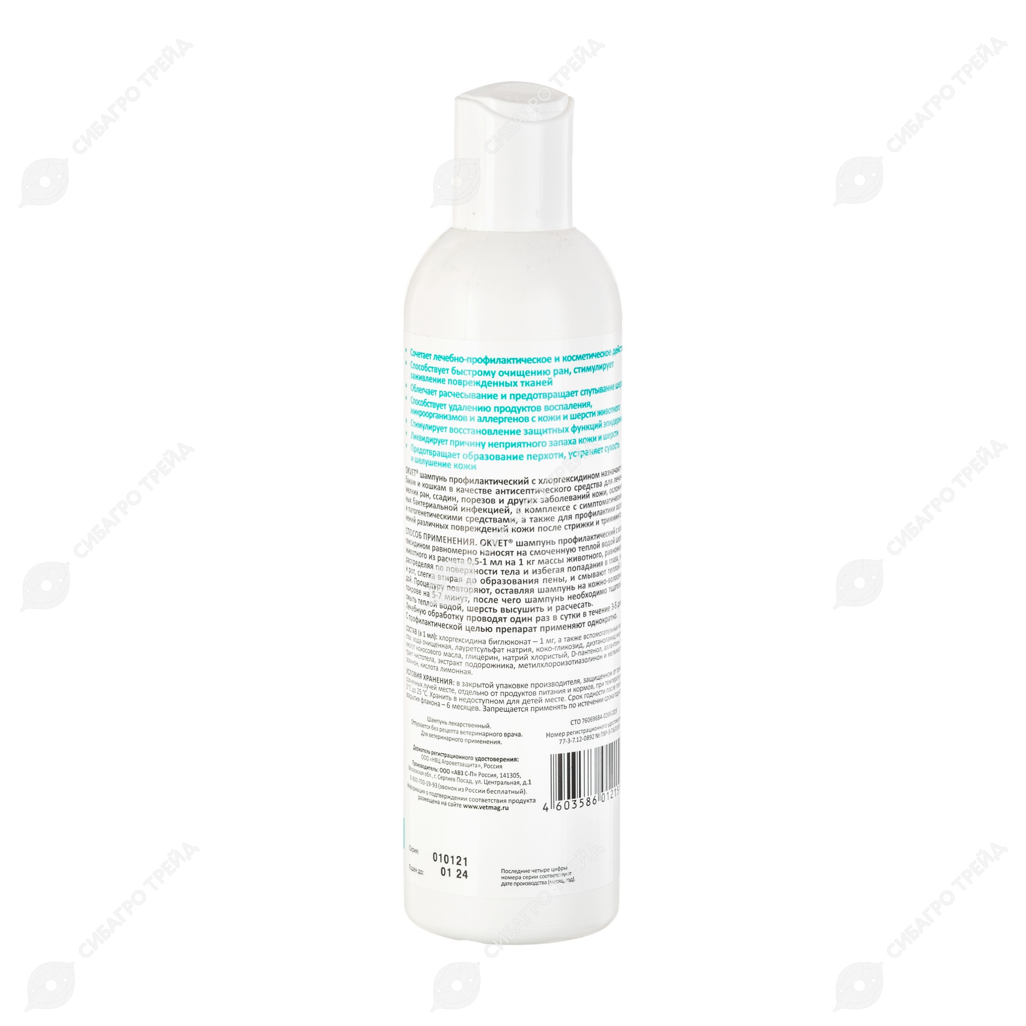 «ОКVЕТ шампунь профилактический с хлоргексидином назначают собакам и кошкам в качестве антисептического средства для лечения мелких ран, ссадин, порезов и других заболеваний кожи, осложненных бактериальной инфекцией, в комплексе с симптоматическими и патогенетическими средствами, а также для профилактики осложнений различных повреждений кожи после стрижки и тримминга.