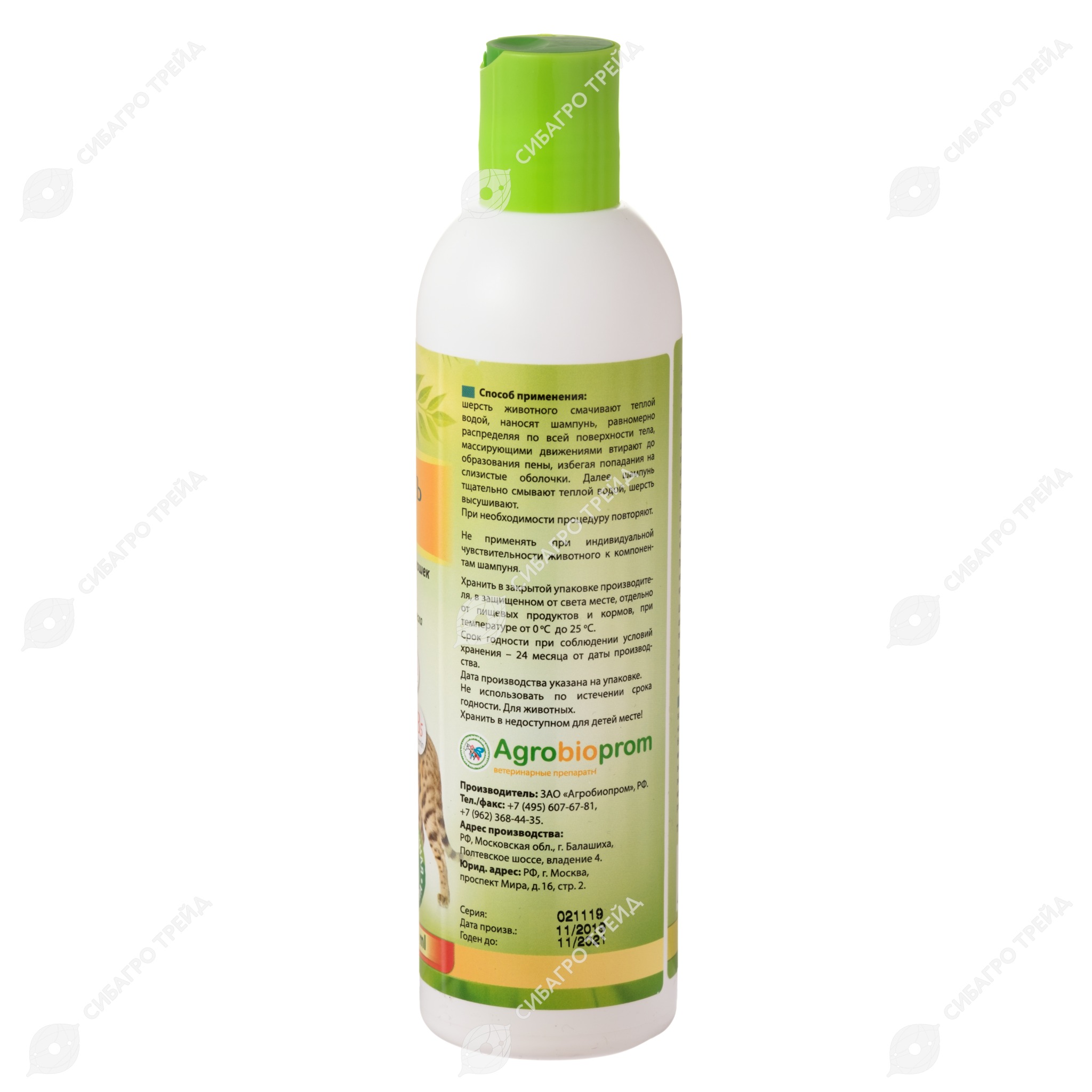 шампунь применяют для бережного ухода за шерстью и кожей животных. Рекомендовано использовать при тусклой, потерявшей блеск шерсти, при затянувшейся линьке; при «проблемной» коже, склонной к дерматитам, раздражениям и перхоти, и при имеющихся на коже ранах, ссадинах и расчесах; при появлении неприятного специфического запаха от животного.
