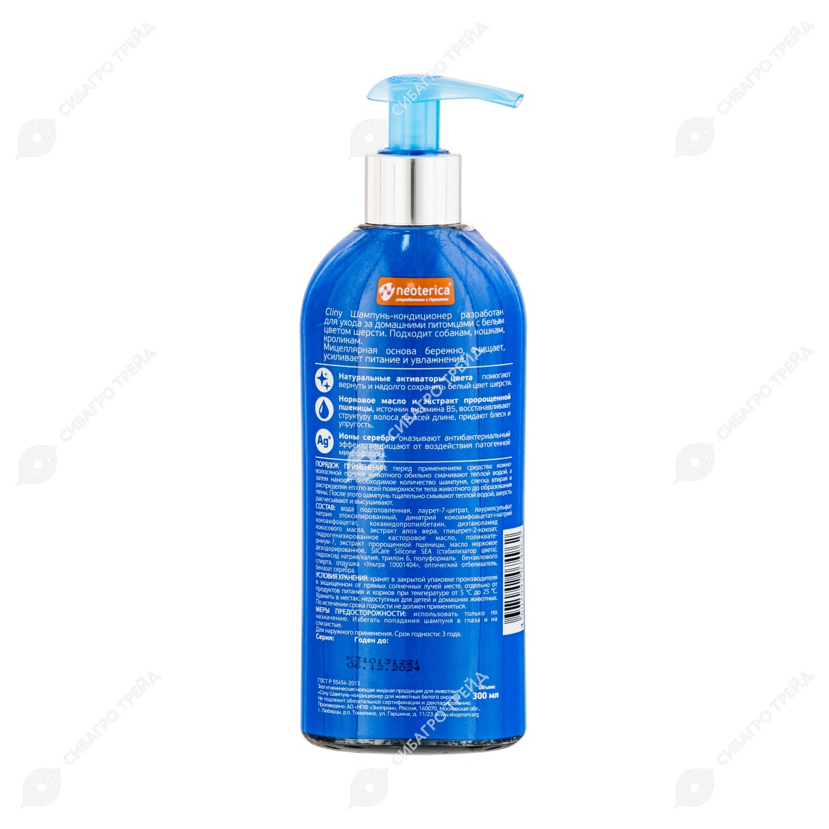 Cliny шампунь-кондиционер разработан для ухода за домашними питомцами с белым цветом шерсти. Подходит собакам, кошкам, кроликам.