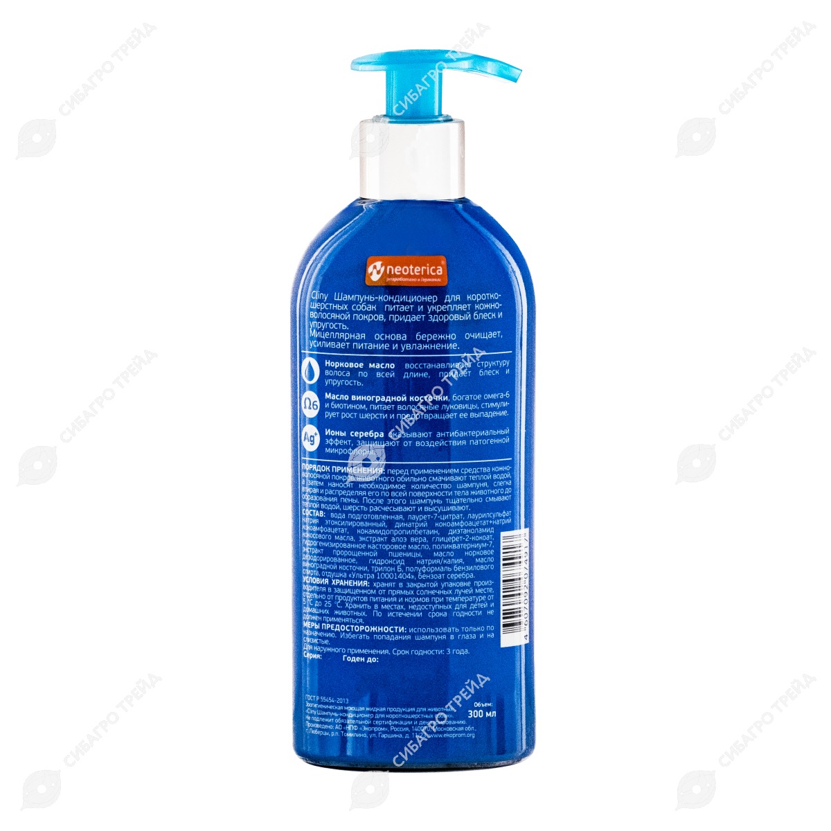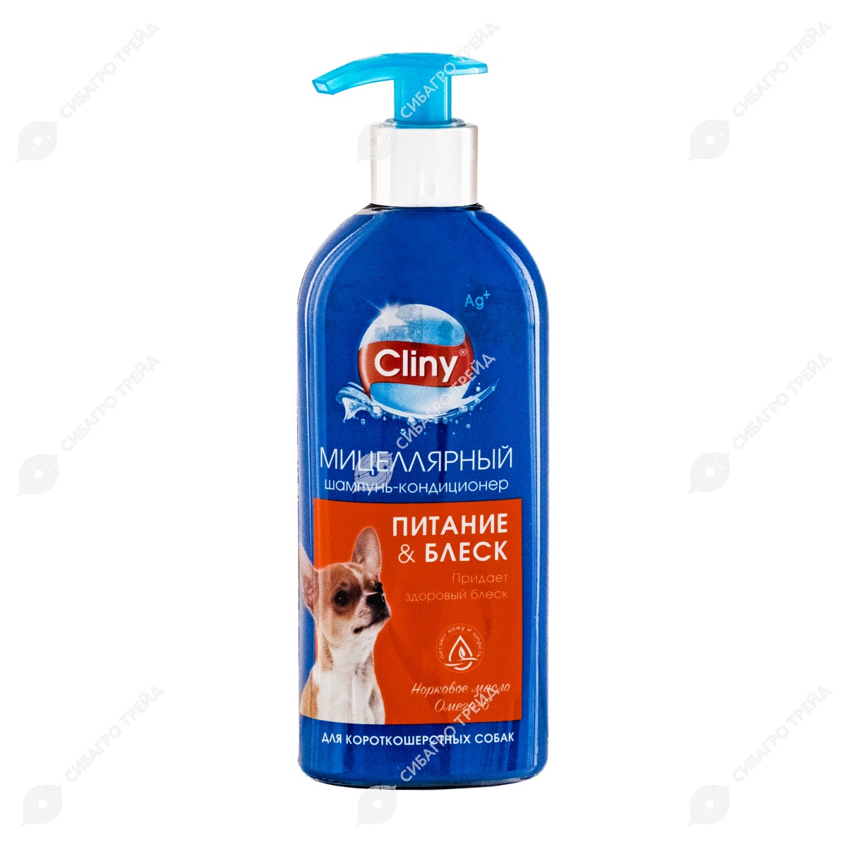CLINY Шампунь-кондиционер для короткошёрстных собак ПИТАНИЕ И БЛЕСК, 300 мл