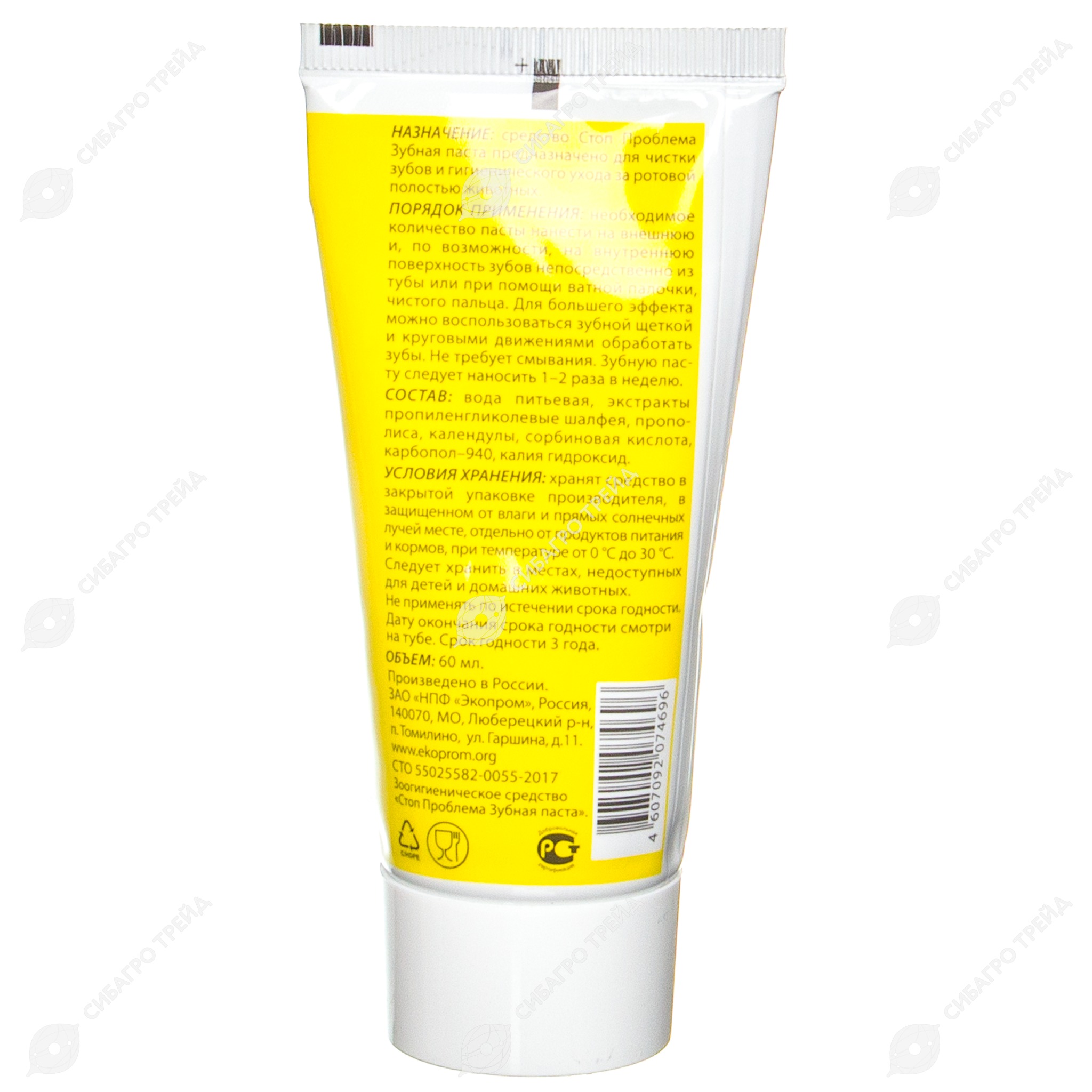 Средство Стоп Проблема Зубная паста предназначено для чистки зубов и гигиенического ухода за ротовой полостью животных.
