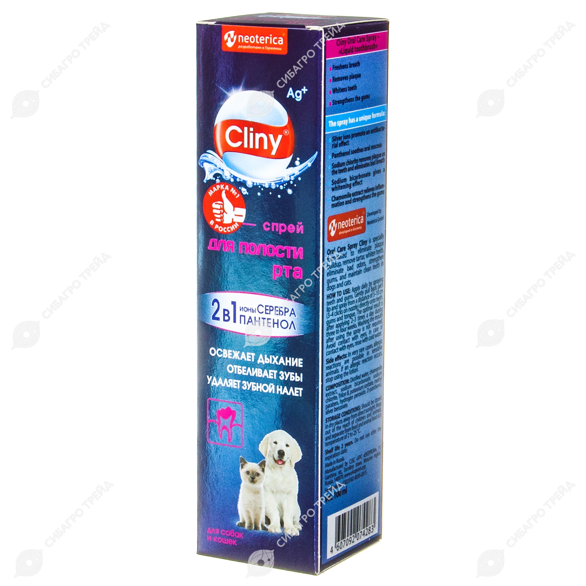 Средство Спрей для полости рта Cliny применяют для предупреждения образования зубного налета и зубного камня, снятия уже имеющихся отложений, отбеливания зубов, устранения неприятного запаха, укрепления десен и очищения полости рта у собак и кошек.