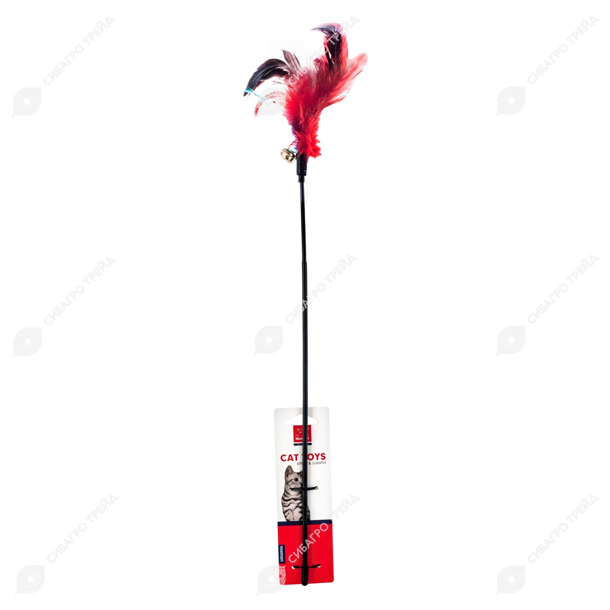 Игрушка-дразнилка перья на палочке (l=63 см) с колокольчиком для кошек, микс, NUNBELL