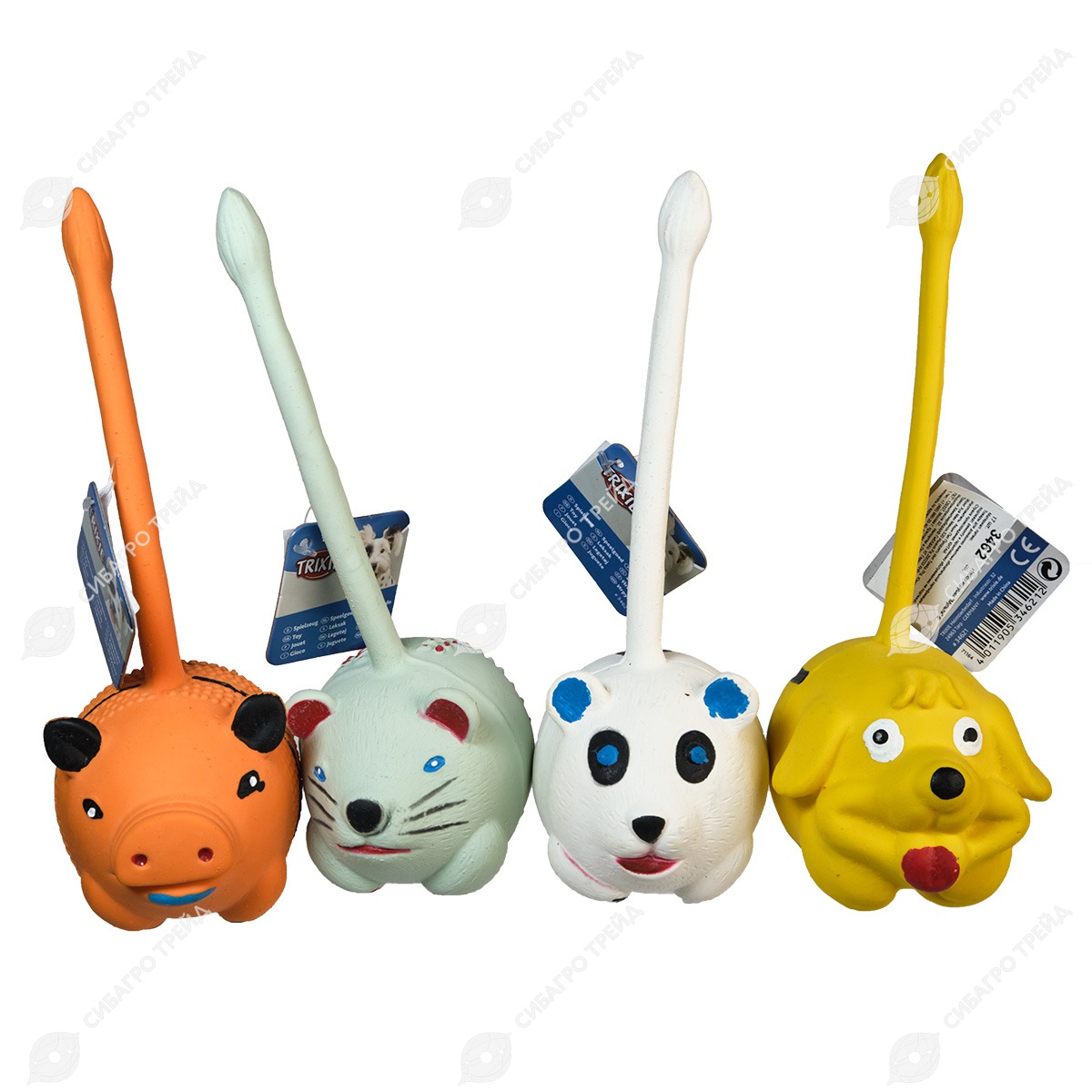 Набор ярких фигурок животных для игры с собакой. Материал - эластичный безопасный латекс. Каждая игрушка оснащена пищалкой и небольшой ручкой. В наборе 17 фигурок животных ø 6 см. Поставляется в специальном удобном дисплее.