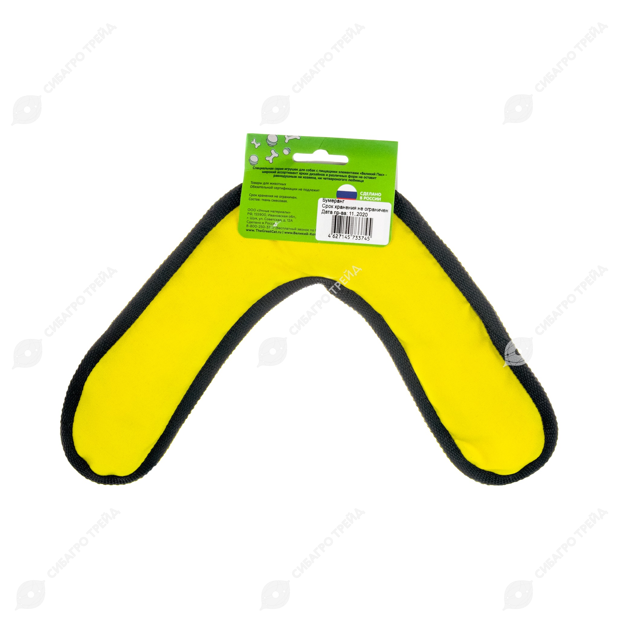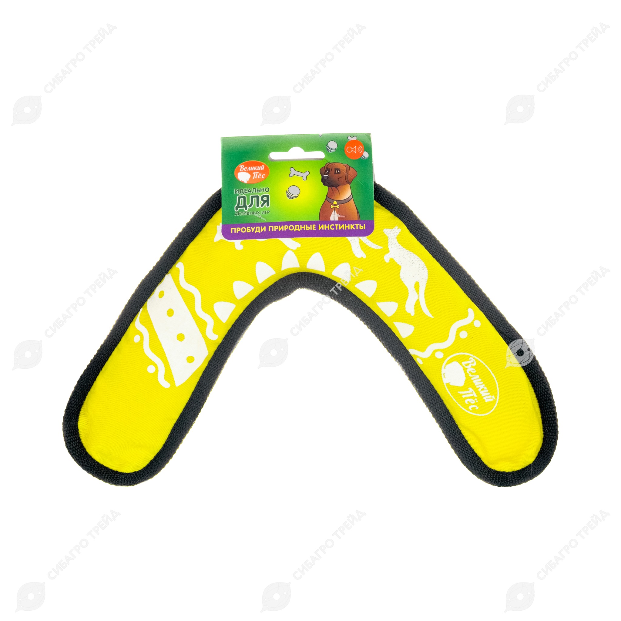 Игрушка для собак в форме бумеранга с пищащим элементом.